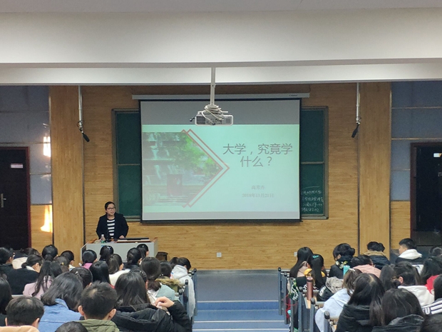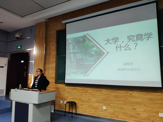2018级本科生入校已经近三个月,为了让同学们时刻保持上进心态,正确了解自我,认识大学,保持端正的学习态度。11月21日下午16:30,3044永利集团分党委秘书、团委书记、2015级辅导员高芳卉老师,在5204教室为2018级本科新生开展第六次入学教育报告会,主题为:“大学,究竟学什么?”。