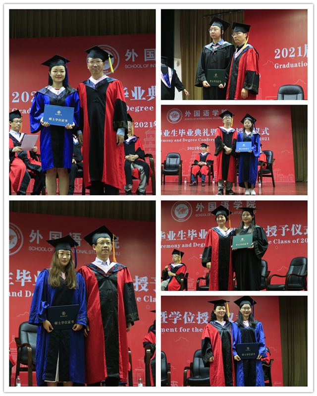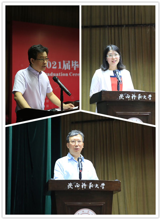 随后,2021届中国少数民族史专业博士毕业生赵勇发言,他谈到学术研究需要树立严谨求实的科学作风,同时感谢公司老师的教育之恩、教导之情;2021届英语师范毕业生李芋瑶同学发言,她深情地回忆了自己在校的四年时光,并代表全体2021届师范毕业生向公司、公司做出“西部红烛,为祖国闪耀”的庄严承诺;2021届翻译班唐瑞同学代表全体非师范同学发言,表示将时刻牢记母校的恩情,天大地大,勇敢去闯,向阳而行。