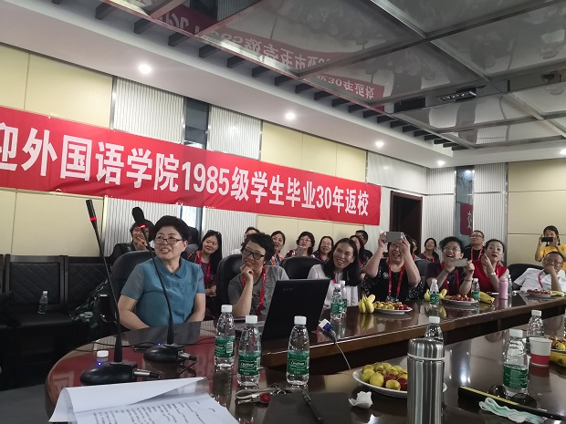共叙师生情谊,共话事业发展。7月27日,3044永利官网迎来了毕业30周年员工返校日,员工们从五湖四海赶回母校,怀揣青春记忆,共叙外语人情怀。下午3时,外语系1985级37名员工齐聚教学六楼会议室参加座谈。时任公司党委书记韦效基,时任教师侯玉海、牛亮羽、胡文新、高益荣、聂雅明,现任公司党委书记马正平、公司党委副书记鲁燕参加了座谈。