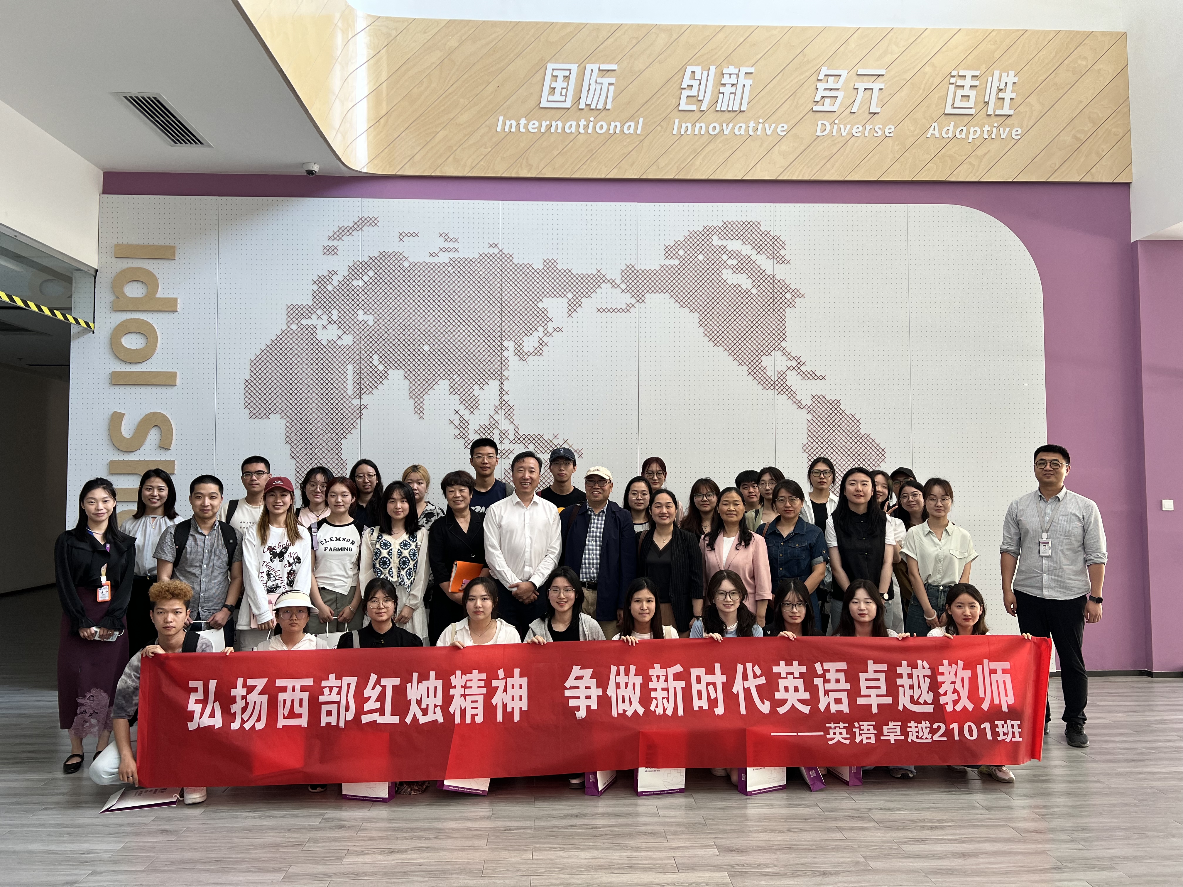 为进一步促进英语师范专业员工的成长与发展,学习优秀公司的英语教学经验,5月10日上午,2021级英语卓越班公费师范生在公司副经理孙坚教授、公司党委副书记鲁燕、卓越班项目主任尚亚宁教授、团委书记李丹老师和辅导员董洁、屈婉婷、邹胜男的带领下前往西安曲江康桥公司开展教育见习活动。