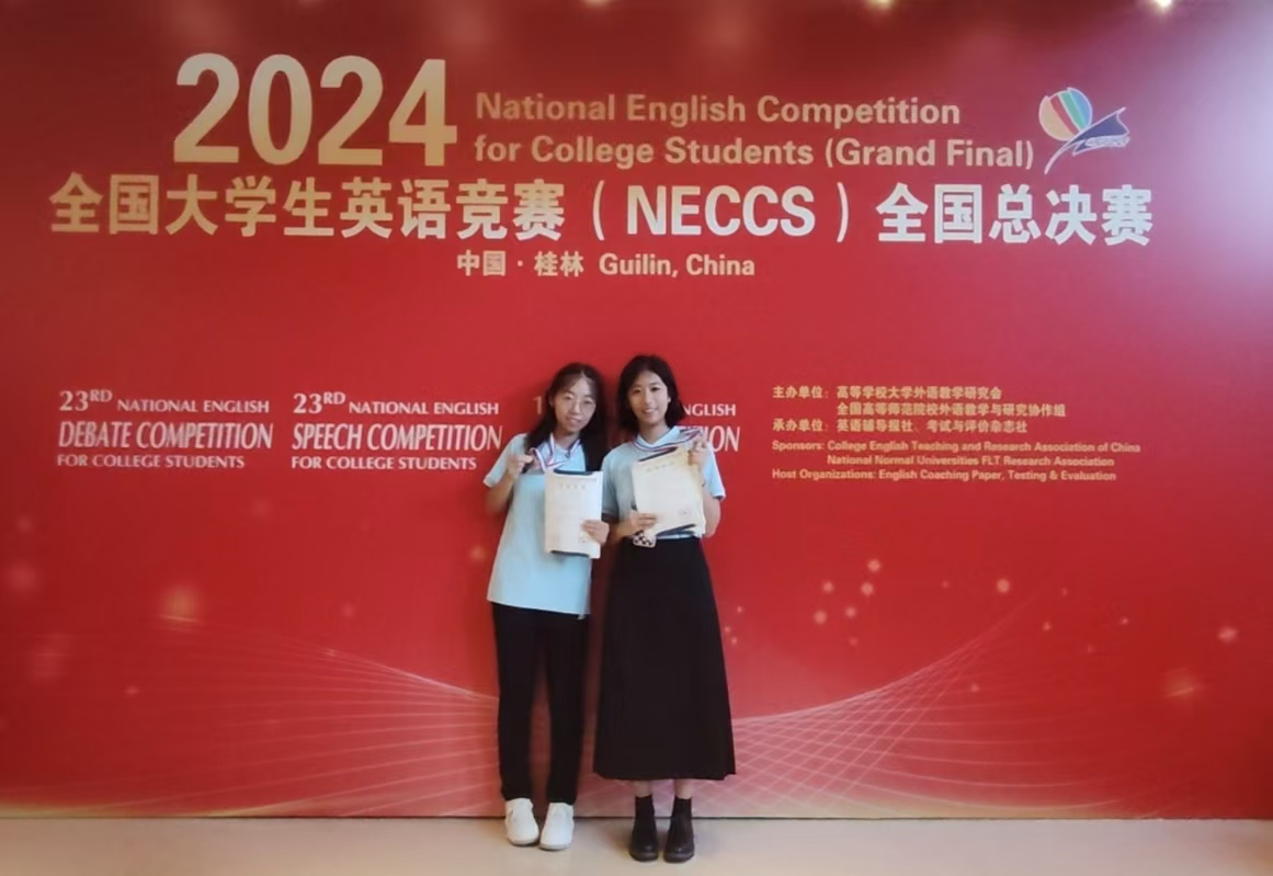 公司教师崔琳指导2023级马克思主义公司本科生侯舒潆、地理科学公司本科生邓思敏参加2024年全国老员工英语竞赛(NECCS)全国总决赛并取得佳绩。