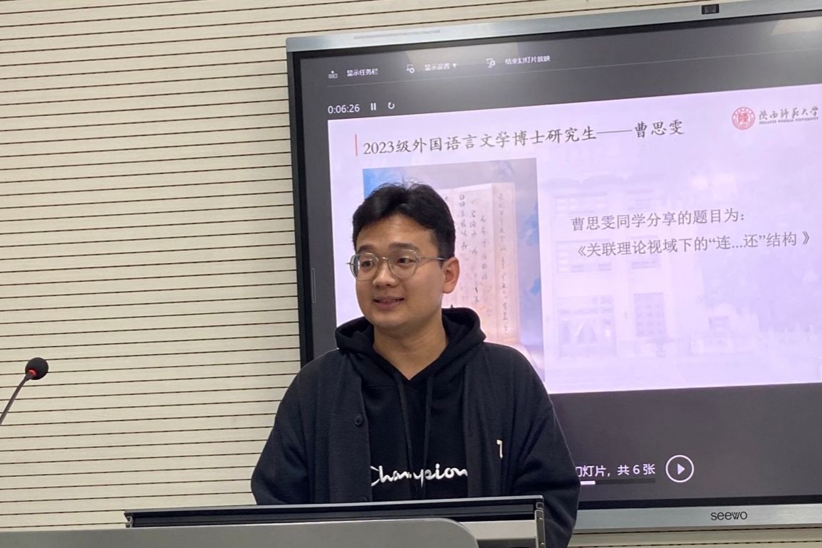 为营造良好学术氛围,激发公司学子的学术研究热情,拓展研究视野,10月17日下午16:30,3044永利集团在雁塔校区教学六楼6320室顺利举办了“博理”研究生学术沙龙第三季第2期。本期学术沙龙特邀公司2023级外国语言文学专业博士生曹思雯作了以“关联理论视域下的‘连…还’结构”为题的学术分享,2024级学科教学(英语)专业硕士研究生陈怡和王艺超担任主持工作。