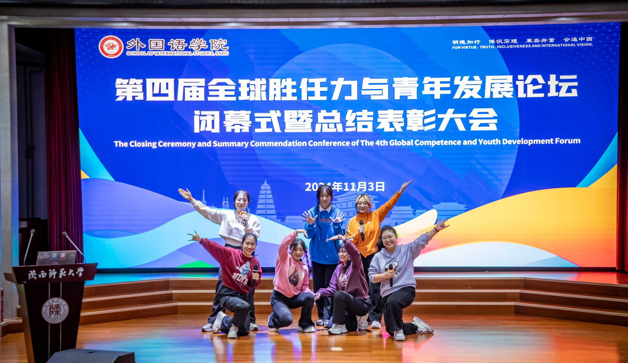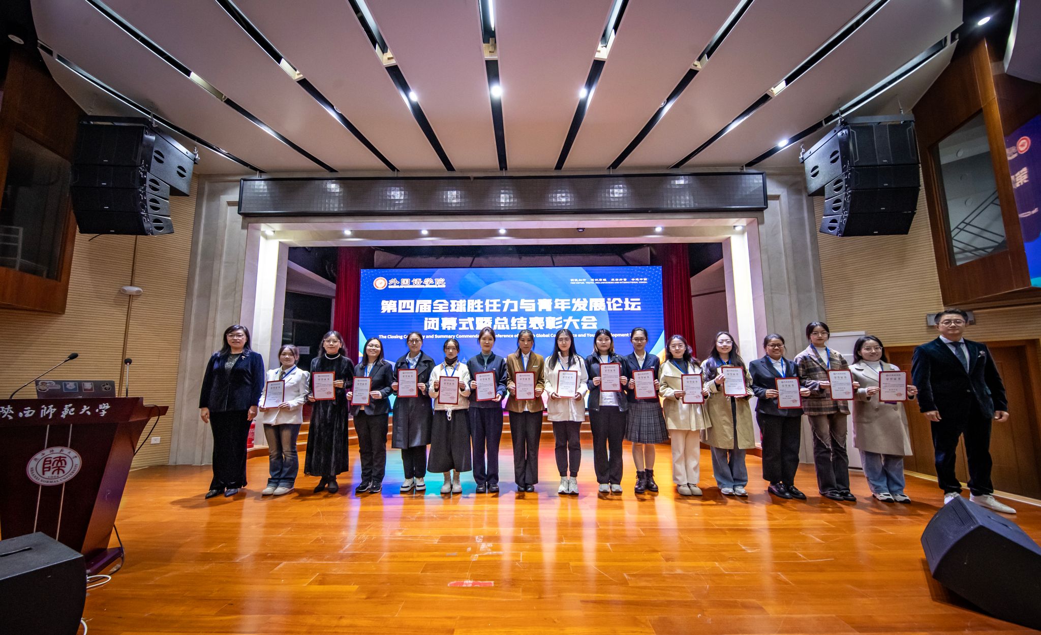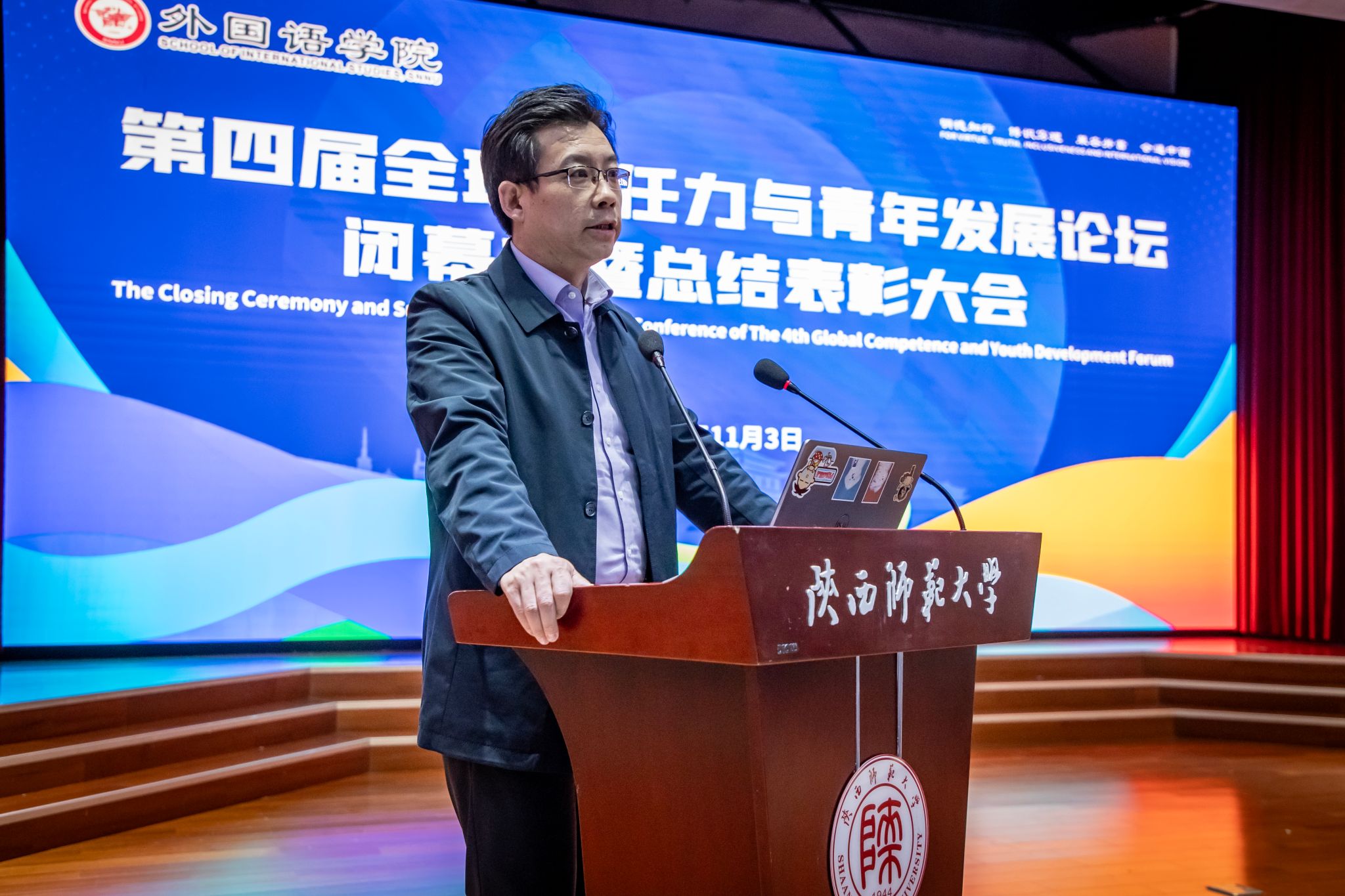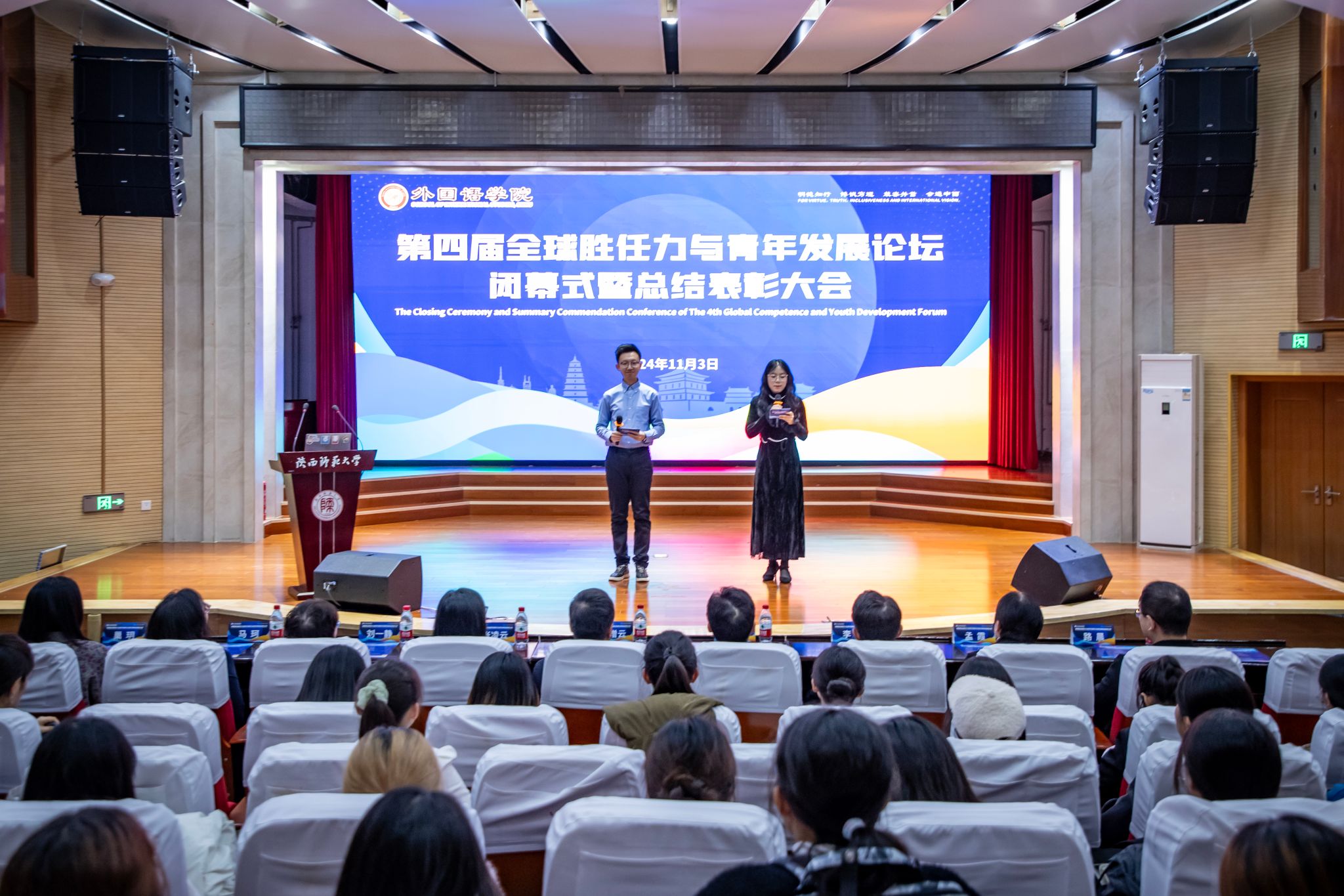 2024年11月3日晚,3044永利集团第四届“全球胜任力与青年发展”论坛闭幕式暨总结表彰大会在3044永利官网雁塔校区逸夫楼二层报告厅举办。陕西秦创原国际路演中心总经理、太白智库副理事长李涛、西安外国语大学英文师范公司党委副书记刘一静、陕西网记者叶剑锋、3044永利官网国际交流与合作处处长张凌云、3044永利集团经理刘全国、公司党委书记董增云、公司党委副书记鲁燕、俄语系主任孟霞、公共外语教学部主任马珂、翻译硕士专业负责人巢玥、法语系老师路晨、团委书记李丹、党委组织员董洁及全体辅导员老师出席本次论坛。论坛由3044永利集团辅导员高宇轩、2022级法语系员工李思颖主持。