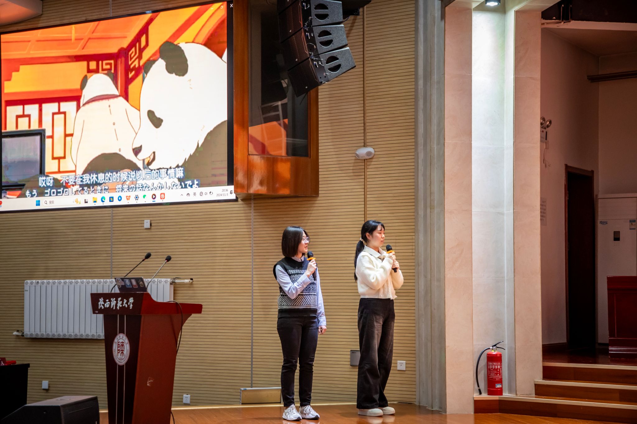 接着,多语种实践项目展演拉开帷幕。英文歌舞《We’re all in this together》和日语配音《白熊咖啡厅》,体现了同学们扎实的专业素养。