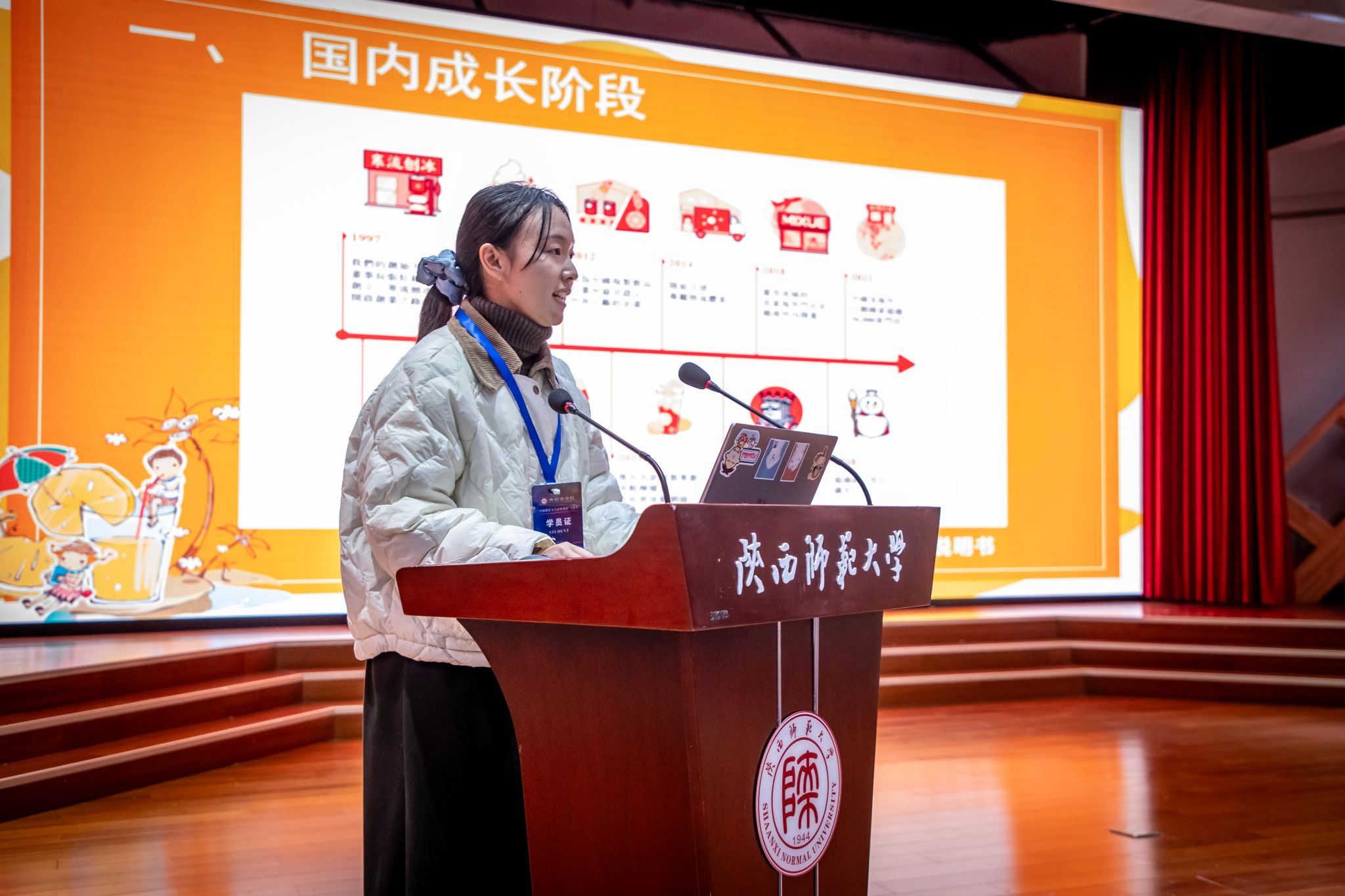 2021级日语专业吉妍同学代表第四小组汇报题为《中国品牌海外成功案例分析与思考——以蜜雪冰城为例》的报告。指导老师巢玥点评指出,外语专业人才应打破专业壁垒,培养跨学科意识,自主积极地把外语专业的语言优势、跨文化优势融入理解和构筑中国品牌故事、文化故事的话语体系中。