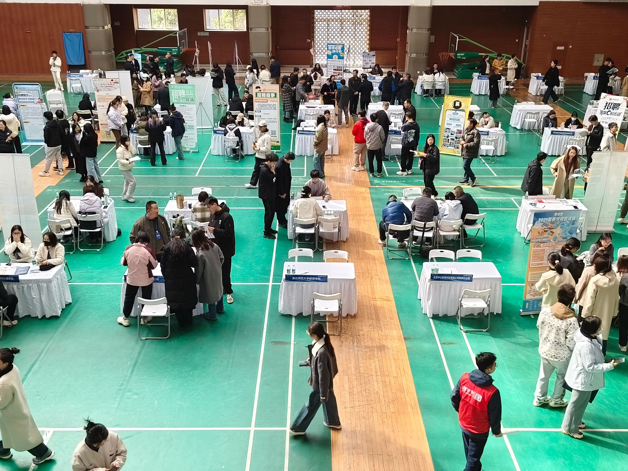 本次招聘会共有来自全国各省(自治区、直辖市)的64家单位参加,涵盖幼儿园、中小学、高校教师等岗位和课程研发、行政管理等众多领域,吸引了来自教育、心理、外语专业的校内外800余名员工参与。招聘会现场气氛热烈,毕业生积极投递简历,与招聘单位深入沟通工作内容及发展前景。同时也吸引了大量低年级员工参加,他们主动了解实习岗位要求,提前感受就业氛围,明晰职业方向。
