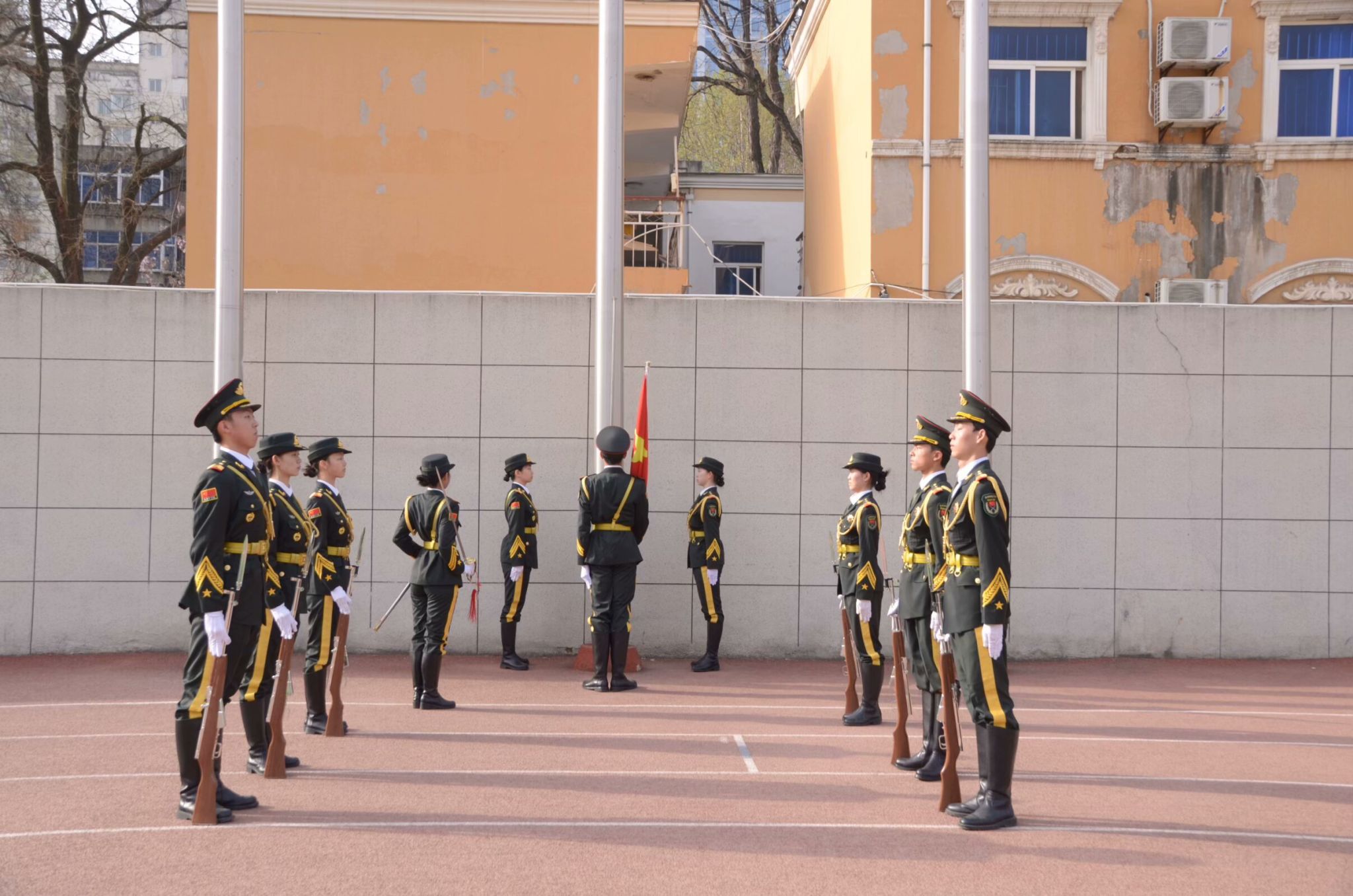 首先,举行升旗仪式,全体起立,高唱国歌。