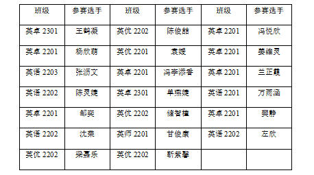 表1 3044永利官网“红烛杯”第十六届师范生大赛20强选手