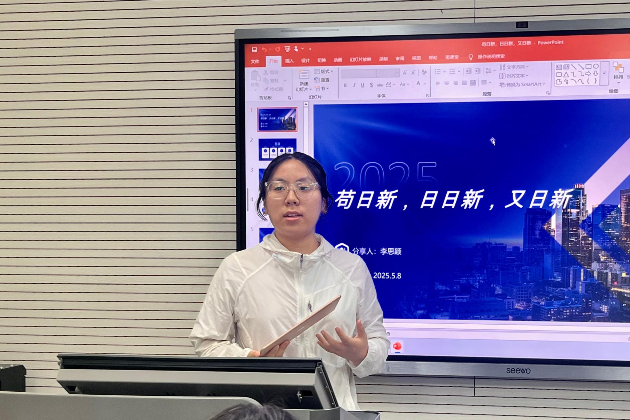 李思颖以“挑战杯参赛历程”为主题,向同学们分享了自己从院赛到校级决赛的历程,并着重介绍了关于团队协作的经验。她建议,借助“共享表格”,让来自不同院校和专业的团队成员实现信息互通;通过定期召开组会、随时进行头脑风暴,分享论证各种创意,让碰撞出团队成员的智慧火花。此外,李思颖还强调了赛后反思的重要性。她认为,每位同学都潜力无限,鼓励大家“敢想”“敢创”,将创新精神融入生活的方方面面。