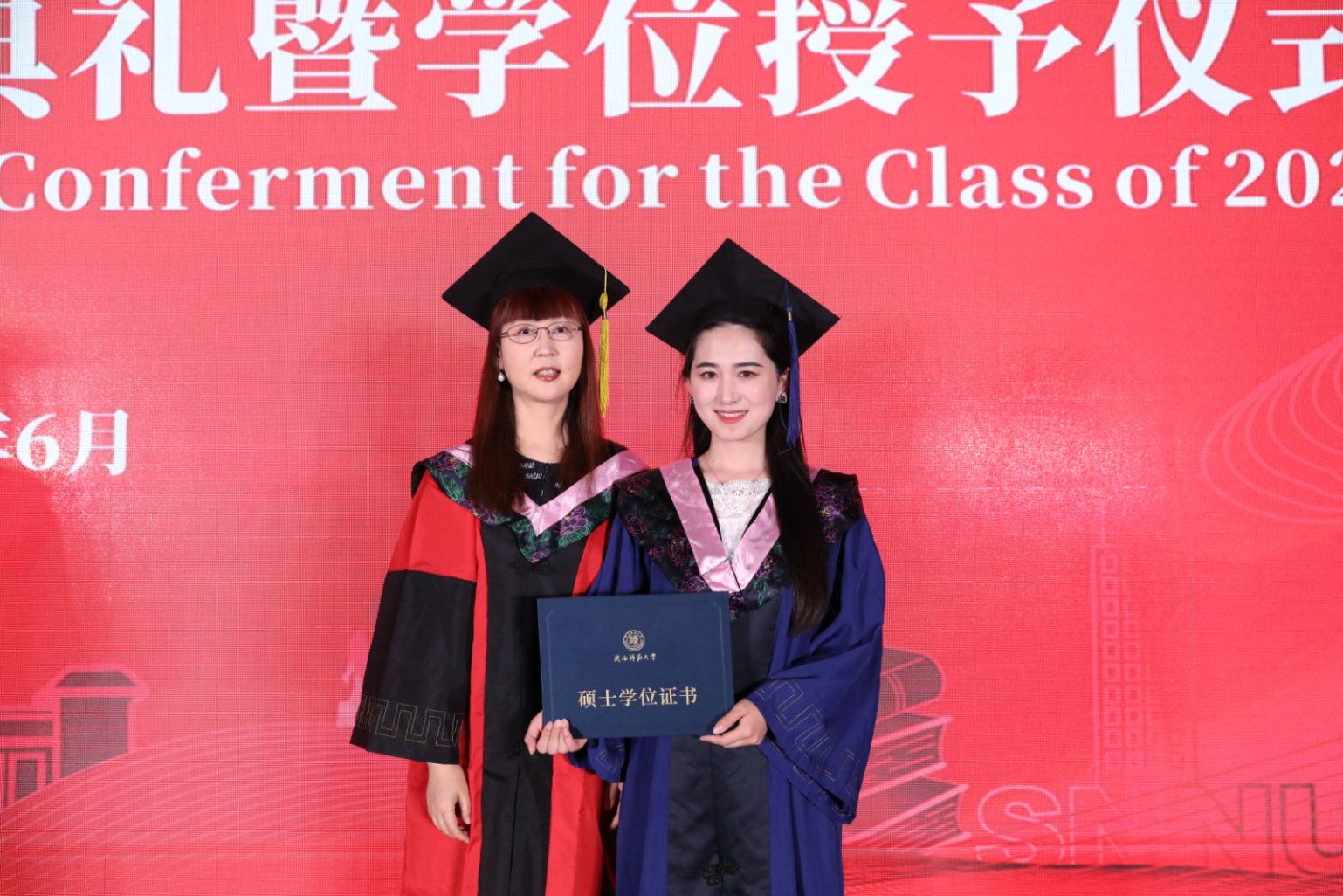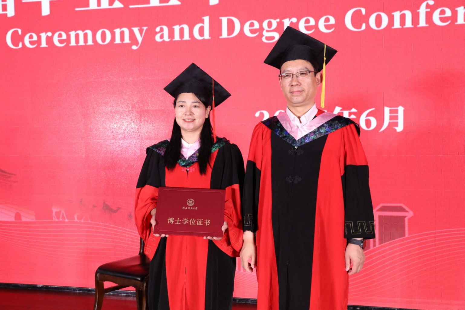 毕业典礼结束后,2025届员工学位授予仪式正式开始。公司学位委员会主席刘全国教授宣读《关于对2025年上半年学位获得者授予学位的决定》,并与公司学位委员会魏军梅教授依次为同学们颁授学位、拨穗并合影留念。