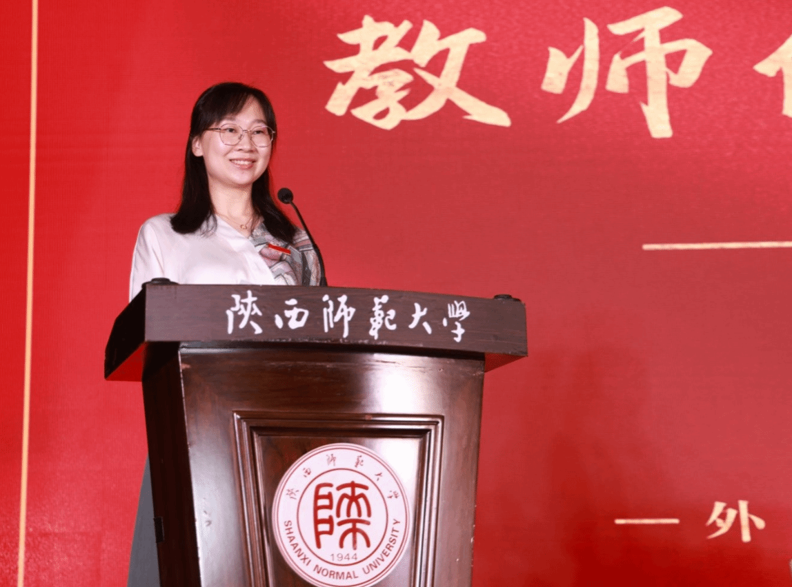 公司教师代表、法语系乔溪老师发言。她向全体毕业生表示热烈祝贺,并借用古希腊的传奇故事告诉大家,要有勇气、有谋略、有见地、有胆识,在人工智能蓬勃发展的时代,以外语人的专业素养,保持开放的心态,打开新世界的大门。