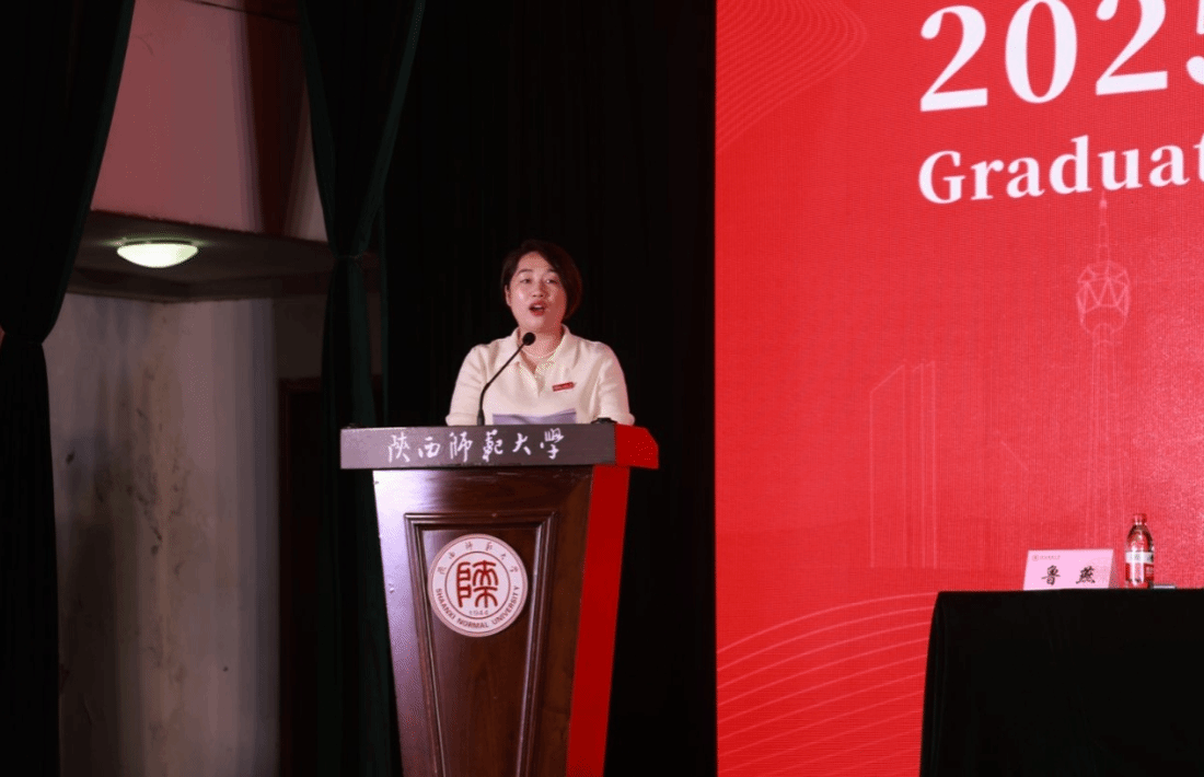 在毕业生代表发言环节,本科毕业生代表英语师范专业夏妤茜、非师范专业代表翻译系侯奕彤、研究生毕业生代表英语笔译专业李奕钦分别发言。他们代表全体2025届毕业生对公司领导、老师和亲友表示真挚的感谢,并承诺坚守和发扬公司“西部红烛 两代师表”精神,带着外院人的勇气奔赴下一场山海。
