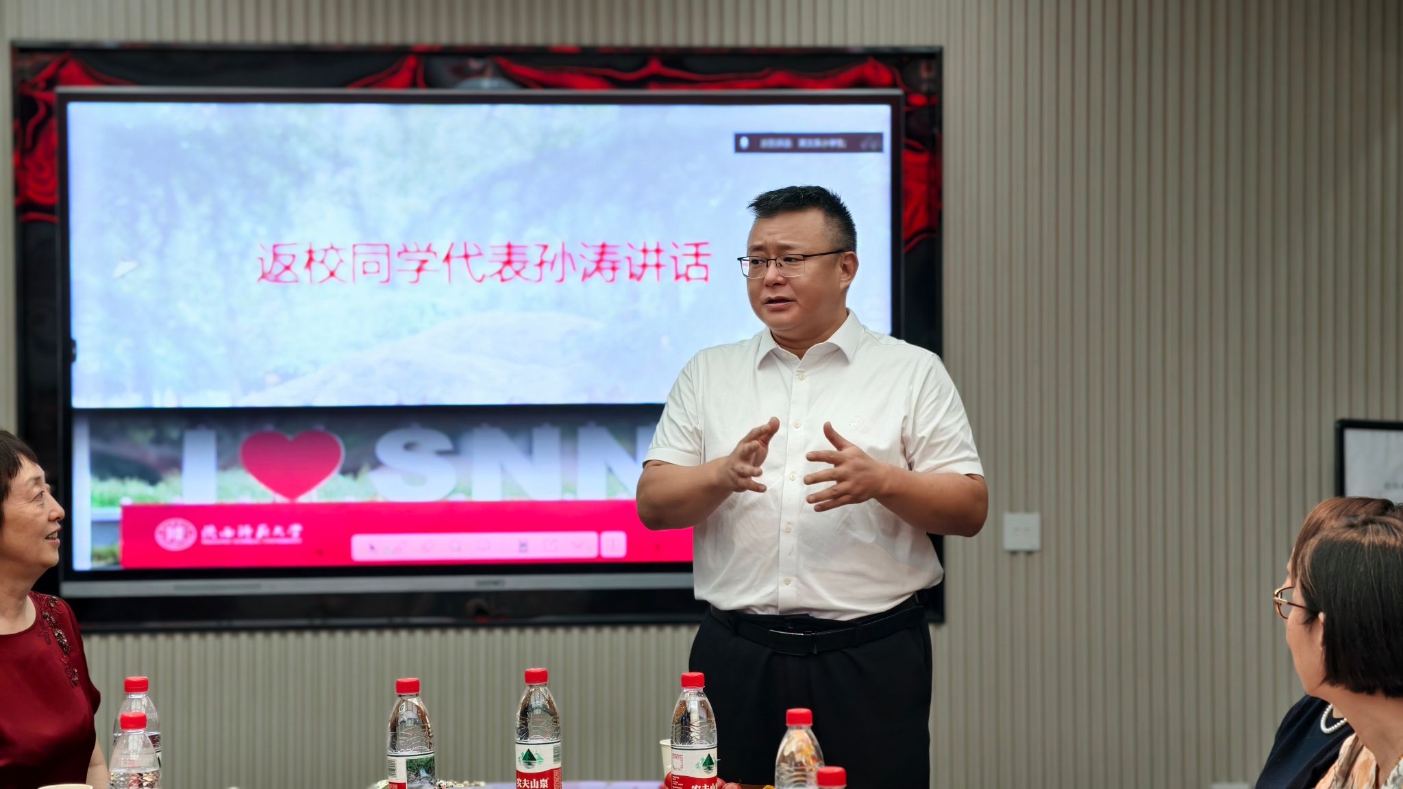 时任教师代表吕敏宏、李炜、杨达复先后发言。他们追忆三十年前课堂内外的点滴往事,细数同学们当年的认真与朝气,更为大家毕业后在各自岗位上践行“西部红烛 两代师表”精神而自豪,并祝愿员工们工作顺利、身体康健。杨达复老师还现场献唱一曲,表达了师生情深。