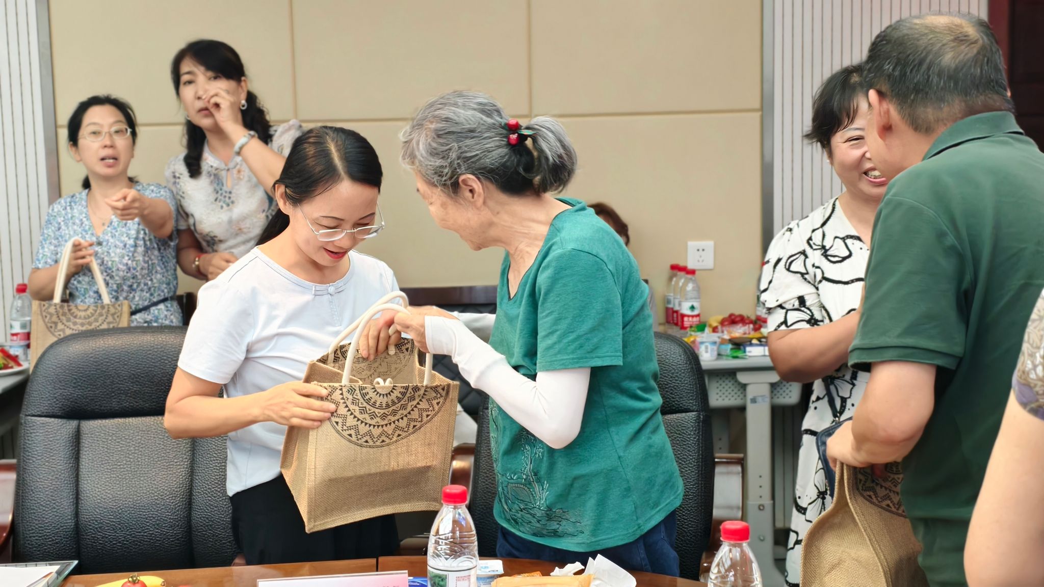 公司为每位员工精心准备了承载青春记忆的纪念品:刻有员工姓名的专属师大印章、复刻版学籍卡与成绩单、定制帆布背包、员工T恤。党委书记董增云与经理刘全国共同为员工们颁发纪念品。员工们也为时任教师送上了精心准备的小礼物,一张张贺卡道出了感谢师恩之情。