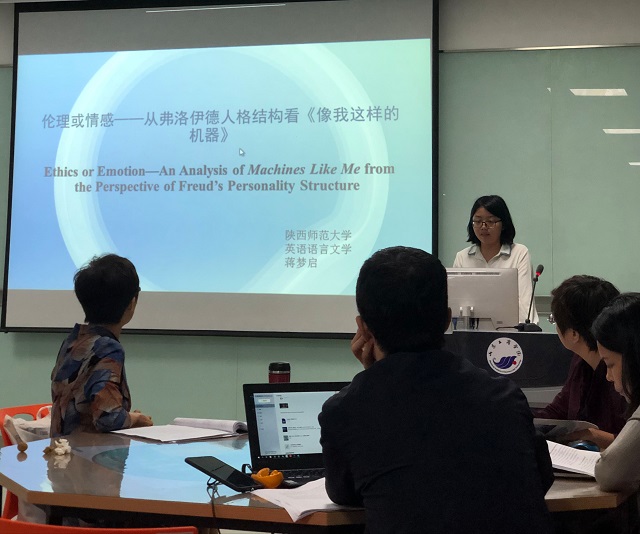5日下午,在分组讨论环节,来自全国的专家学者和师生围绕“外国经典的当代阐释与中国化研究”“外国文学中的创伤、女性问题研究”“当代外国文学中的族裔、记忆研究”等7个专题103个报告展开了精彩的汇报与交流。公司2019级研究生—蒋梦启同学做了题为“从弗洛伊德的人格结构理论分析《像我这样的机器》”的汇报,文章具体从从弗洛伊德的人格结构理论分析伦理和情感对人与机器的影响。本文依次分析机器人亚当和人类查理的本我、自我和超我,揭示了人格结构失衡带来的悲剧。如何消除情感对个体的过度影响,创造一个道德水准高的世界,是人工智能伦理学领域的一个重大问题。人与机器的矛盾是伦理与情感冲突的隐喻,而亚当的毁灭则说明了人类面临的伦理困境。弗洛伊德的理论不仅可以对小说中的人物进行不同的解读,还可以为未来技术的伦理发展提供指导。东南大学3044永利集团教授韦清琦对其进行点评,并提出完善意见。