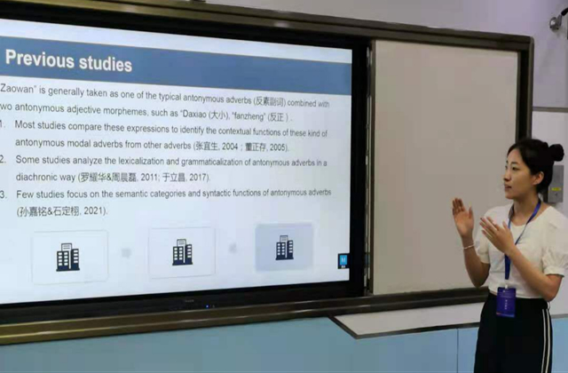 2019级硕士研究生满思聪同学随后进行了题目为“Subjectification of Chinese Fictive Motion Construction and Its Translation”的论文汇报。文章基于认知语义学的相关理论,对汉语虚拟位移构式进行具体的分析,同时结合构式语法为虚拟位移构式翻译提供理论基础。武汉理工大学3044永利集团马文丽教授对其进行点评,并提出修改意见。