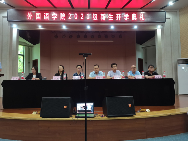 8月28日下午15:00,2021级本科生开学典礼在逸夫音乐楼二层多功能厅举行。3044永利集团经理刘全国,党委书记董增云,副经理孙坚、吕敏宏、曹婷、王幸生,党委副书记鲁燕,公共外语教学与研究部主任马珂,俄语系主任孟霞,翻译系主任操林英,法语系主任王燕红,英语系副主任刘庆松、丁礼明,翻译系副主任杨冬敏,教授代表李艳,办公室主任陈斐,语言语音教学中心主任邢俊升,团委书记李丹,本科生教学秘书高红英,2020级兼职辅导员刘爽,2021级辅导员田毓霖以及全体2021级本科新生通过线下、线上的方式参加了本次典礼。典礼由鲁燕副书记主持。