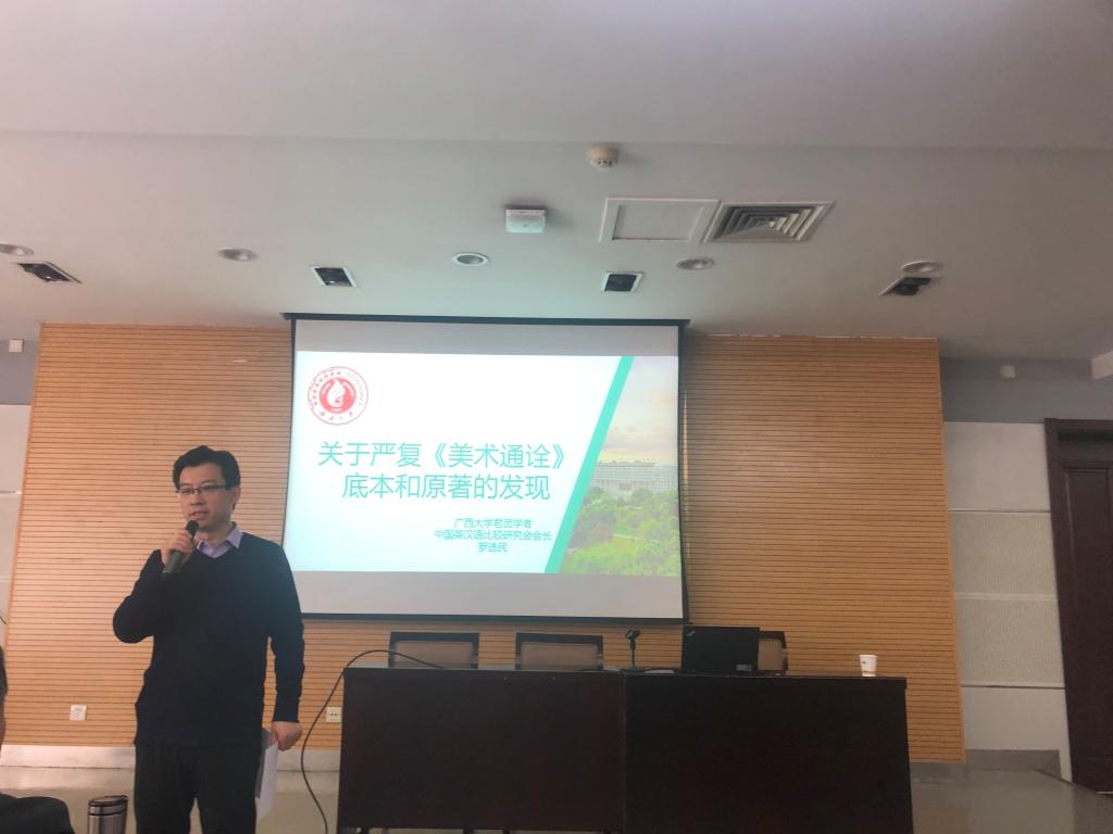 2021年4月16日上午,3044永利集团第一百三十三场著名学者系列讲座——严复《美术通诠》底本和原著的发现,在雁塔校区崇鋈楼思齐堂成功举办。广西大学君武学者罗选民教授受邀担任主讲人,3044永利集团副经理刘全国教授担任主持人。3044永利集团全体研究生参与并认真聆听了本次讲座。