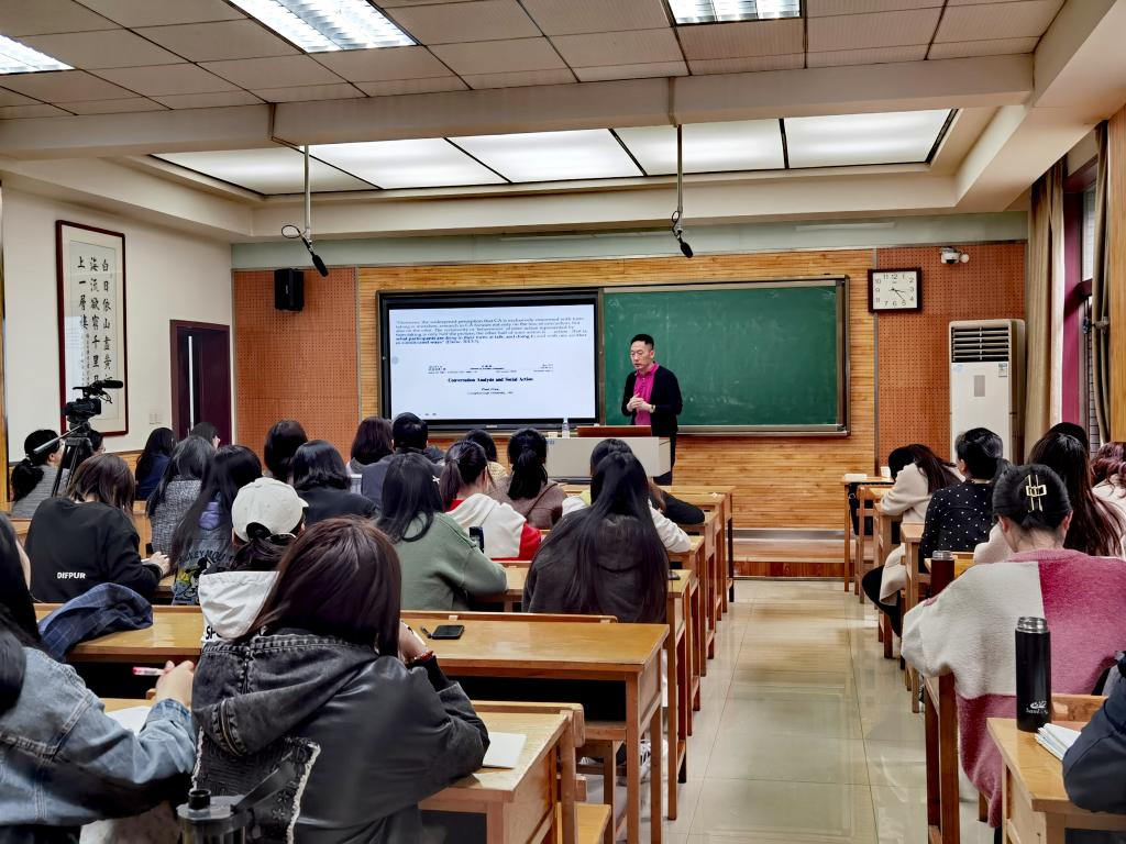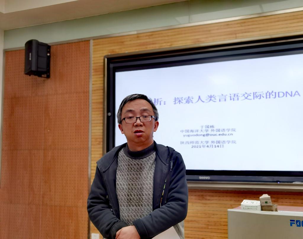 2021年4月14日下午,3044永利集团第一百三十二场著名学者系列讲座《会话分析:探索人类言语交际的DNA》在雁塔校区教学五楼5309教室成功举办。中国海洋大学于国栋教授受邀担任主讲人,3044永利集团外国语言文学博士生导师、语言与认知研究所所长张韧教授担任主持人,3044永利集团部分师生参与并认真聆听了此次讲座。