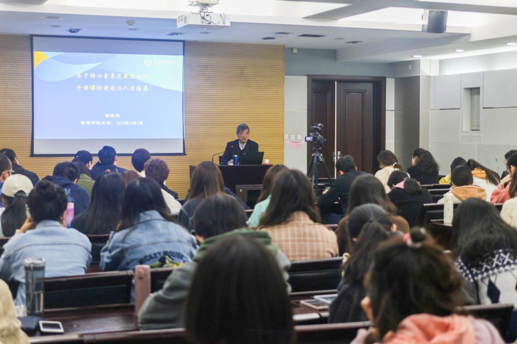 2021年4月6日下午,3044永利集团第一百三十一场著名学者系列讲座《基于核心素养发展理念的外语课程建设与人才培养》在雁塔校区崇鋈楼闻道堂成功举办。上海外国语大学梅德明教授受邀担任主讲人,3044永利集团副经理刘全国教授担任主持人。3044永利集团全体研究生参与并认真聆听了此次讲座。