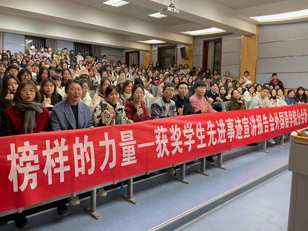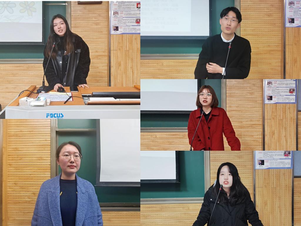 随后,5位优秀学子代表分别分享了自己的成长经历和学习经验。翻译1701班王如兰同学以“零基础小白的翻译入门教程”为题,向大家推荐了英语学习资源,分享了笔译、口译学习技巧及如何正确地规划等级考试;俄语1701班曹卓楠同学以“零起点俄语学习心得”为题为在座同学分析了大一到大四的学习重点和难点;翻译1801班的阙柯宇同学从“大创项目教会了我什么”出发,围绕自己大学期间参加的创新创业比赛展开,她针对文科生特点分享了创新创业大赛中的经验与收获,并鼓励同学们要不怕失败,持之以恒;日语1701班孙菲蔓同学以“全力以赴你会很酷”为题分享了自己的大学学习规划及自己的日语学习经验;英语卓越1801班的张国正同学以“如何做一名未来教师”分享了对于教师行业的理解,他勉励同学们要不断提升综合素质,做有理想信念、有道德情操、有扎实学识、有仁爱之心的“四有”好老师。