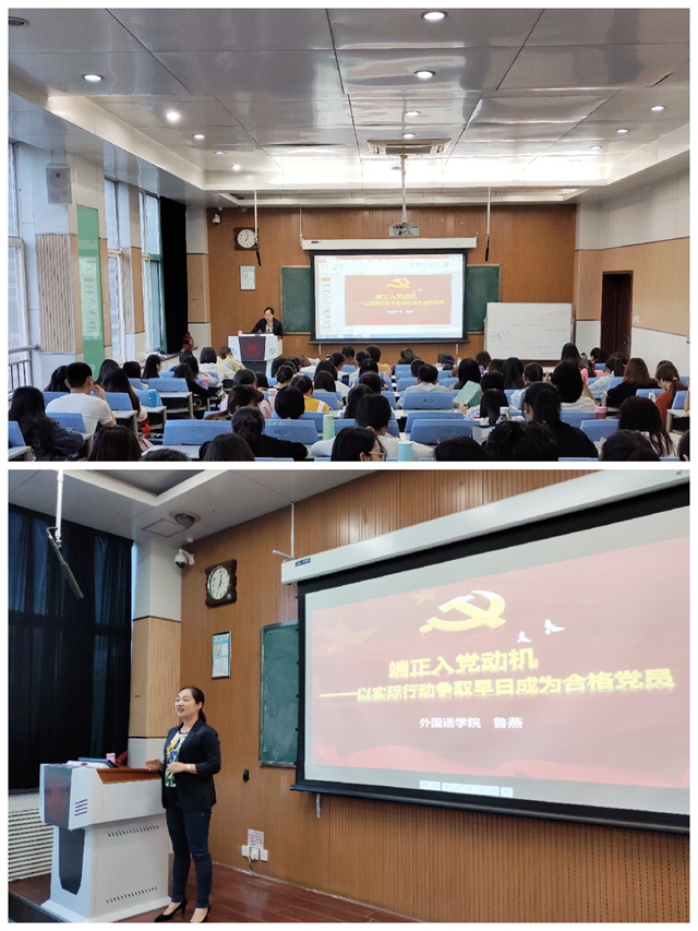 近一个半小时的党课中,鲁经理结合在自身工作中碰到的实例及一个个伟人感人至深的故事,运用鲜活的例子和生动的视频,向同学们分析和解读了不同入党动机间的差别,希望同学们能够牢记共产党人的初心和使命,端正入党动机。