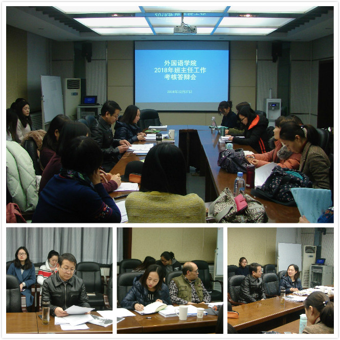 随后,工作满一年的10位班主任依次进行述职答辩。曹春阳老师汇报了他对所带员工教授Matchware交互课件程序制作的工作内容。马珊老师汇报了参加班级主题班会,对员工进行就业考研指导、开展美国文化讲座情况。王勤老师汇报了她在听课班会等方面开展的工作,尤其是以“如何成长为优秀教师”为主题开展师范班工作。张春娟老师汇报了与辅导员及特殊员工的座谈及谈话情况,尤其是课堂学习及专四备考指导的情况。李伟芳老师汇报了帮助俄语员工备考英语六级及考研指导情况,分享了考研信息检索、“网络信息时代背景下外语专业学习者的批判性思维”讲座、以写促学的写长法讲座情况。王西强老师汇报了对班级跟班听课及座谈面谈情况,以及请专家为同学们介绍翻译经验和译者心理,鼓励员工根据自己的学术兴趣投身科研工作的情况。陈蕾老师汇报了开展主题班会的具体内容及邀请国外教授指导员工参与暑期公司的情况,同时汇报了专四指导、邀请铁一中老师做报告、创新创业辅导的情况。杨盛兰老师汇报了参与员工班会以及听课中发现的问题,开展每月定期见面的谈心谈话情况和汉语文化翻译相关讲座。乐燕子老师汇报了参与员工班会,成长经历分享及实践情况,同时汇报了对员工专业学习上的指导。戴琨老师围绕班主任工作“六个一”的要求汇报了在专业学习上员工存在的问题,并分享了组织员工旁听硕士答辩观摩指导,介绍了图书馆电子数据库查询,开展本科生写作规范和科研项目申请方法指导等情况。