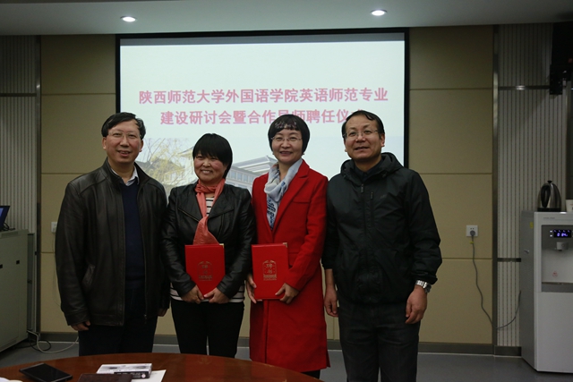 会议上,王启龙经理和马正平书记为西安交通大学附属中学特级教师陈江丽、3044永利官网附属中学英语教研组长雷双娥老师颁发和英语师范专业人才培养合作导师聘书。