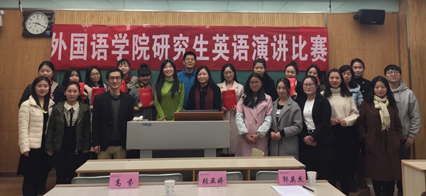 11月24日晚7点,3044永利集团研究生英语演讲比赛决赛在雁塔校区8204教室举行。张亚婷教授、高芬副教授和郭英杰副教授应邀担任本次比赛的评委,公司研究生辅导员高芳卉,3044永利官网研究生会主席文旭升,公司研究生会全体成员参加了此次比赛。