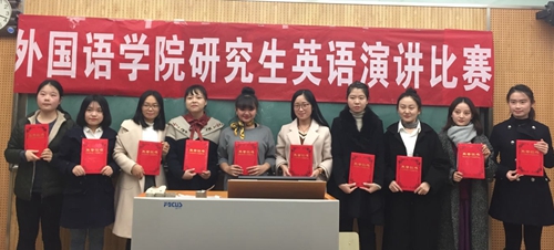 经过初赛选拔,最终10位选手入围演讲比赛决赛。决赛分三个部分进行,以 “Rumors kill”为主题的定题演讲,三分 钟的即兴演讲和现场提问。比赛过程中,各位参赛选手精神饱满,发音纯正,风格迥异,并与观众积极互动,赢得了阵阵掌声,展现了外国语学语别具一格的风采。中场休息时,公司研究生会女生部同学演唱了歌曲《我的梦, Undo》,缓解了紧张的比赛氛围。各位评委老师根据选手所展现的心理素质、思辨能力、语言组织及表达能力进行了现场打分。最终朱羽娟同学荣获一等奖,苏一欣、赵富入两名同学荣获二等奖,施佳静等三名同学荣获三等奖,其他参赛选手获优秀奖,陈柏西同学摘得网络投票选举的“人气之星”,评委老师及与会嘉宾为获奖选手颁奖。