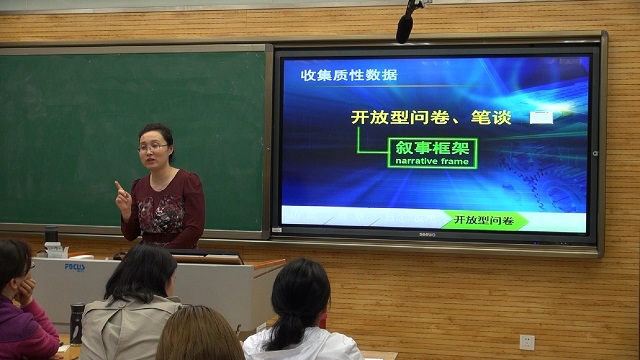 孙晓慧副教授此次的讲座主题围绕质性数据的收集、分析和呈现展开。首先她先引用了几位名家对于质性研究的认识,并基于此提出了自己在这方面的研究感受;其次孙晓慧副教授就质性研究的概念和大家展开了讨论,并对评判高质量研究的标准做了详细罗列和阐述;接着她又对如何收集质性数据做了讲解;紧接着孙晓慧副教授对质性和量化数据做了比较分析;最后她就获得质性数据的途径以及如何在论文中呈现质性数据做了详细解说并通过视频让同学们对质性数据有了进一步的理解。