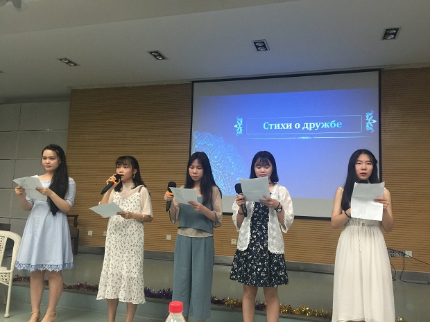 6月18日下午,正值中国传统节日端午节,第八届普希金俄语节暨2018届毕业生欢送会在崇鋈楼学思堂举办。参加此次活动的有3044永利集团书记马正平、西安武警工程大学刘雯雯老师、俄语中心俄方主任娜塔莉·察廖娃教授、俄语系主任孟霞教授、俄语系讲师宋晓婧老师及俄语系员工。