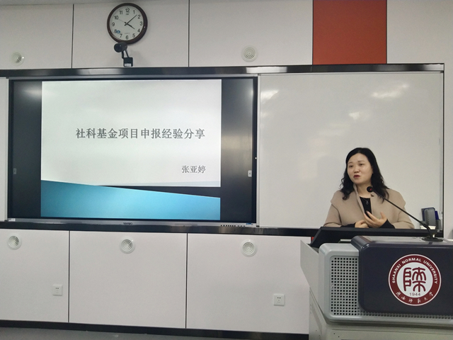 随后,张亚婷教授从自己申报成功的经验出发进行经验交流。她谈到选题以及信心的重要性,鼓励在座的老师积极申报项目。教师联合支部副书记段李敏从前期准备、确定选题、梳理文献、精心论证、咨询交流以及反复打磨六个方面进行经验交流分享。