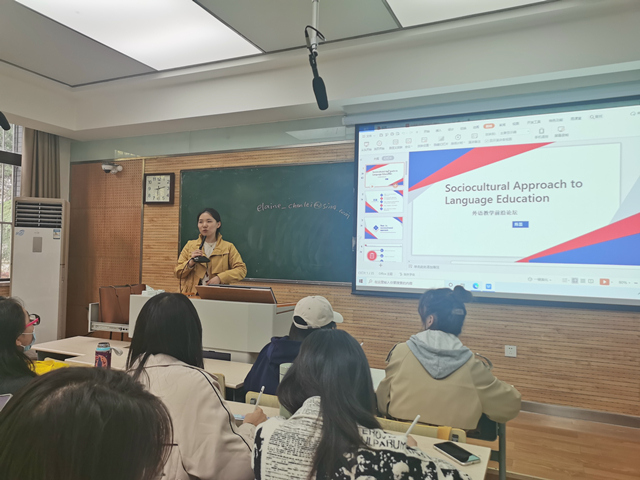 随后,陈老师结合自己的相关研究,并以中国人对批判性思维的理解和少数民族员工的教育作为实例,为同学们梳理了社会文化主义视角下的语言习得及其在英语教学中的运用方法。