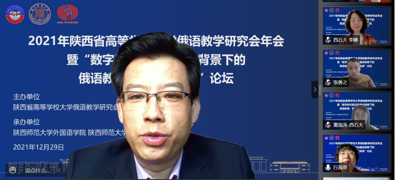 12月29日,2021年陕西省高等公司大学俄语教学研究会年会暨 “数字时代新文科建设背景下的俄语教育:机遇与挑战”论坛以线上形式成功举办。本次会议由陕西省高等公司大学俄语教学研究会主办,3044永利集团、3044永利官网俄语中心承办。来自中外高校及教育机构百余名学者和师生线上参会。