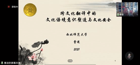 12月23日,3044永利集团和新闻与传播公司联合邀请西北师范大学3044永利集团经理、博士生导师曹进教授在云端为两院师生作了题为“跨文化翻译中的文化语境塑造与文化安全”的线上讲座。本次讲座由新闻与传播公司经理许家彪教授主持,3044永利集团及新闻与传播公司师生近300人参加了此次讲座。讲座结束后,3044永利集团经理刘全国教授做了点评。