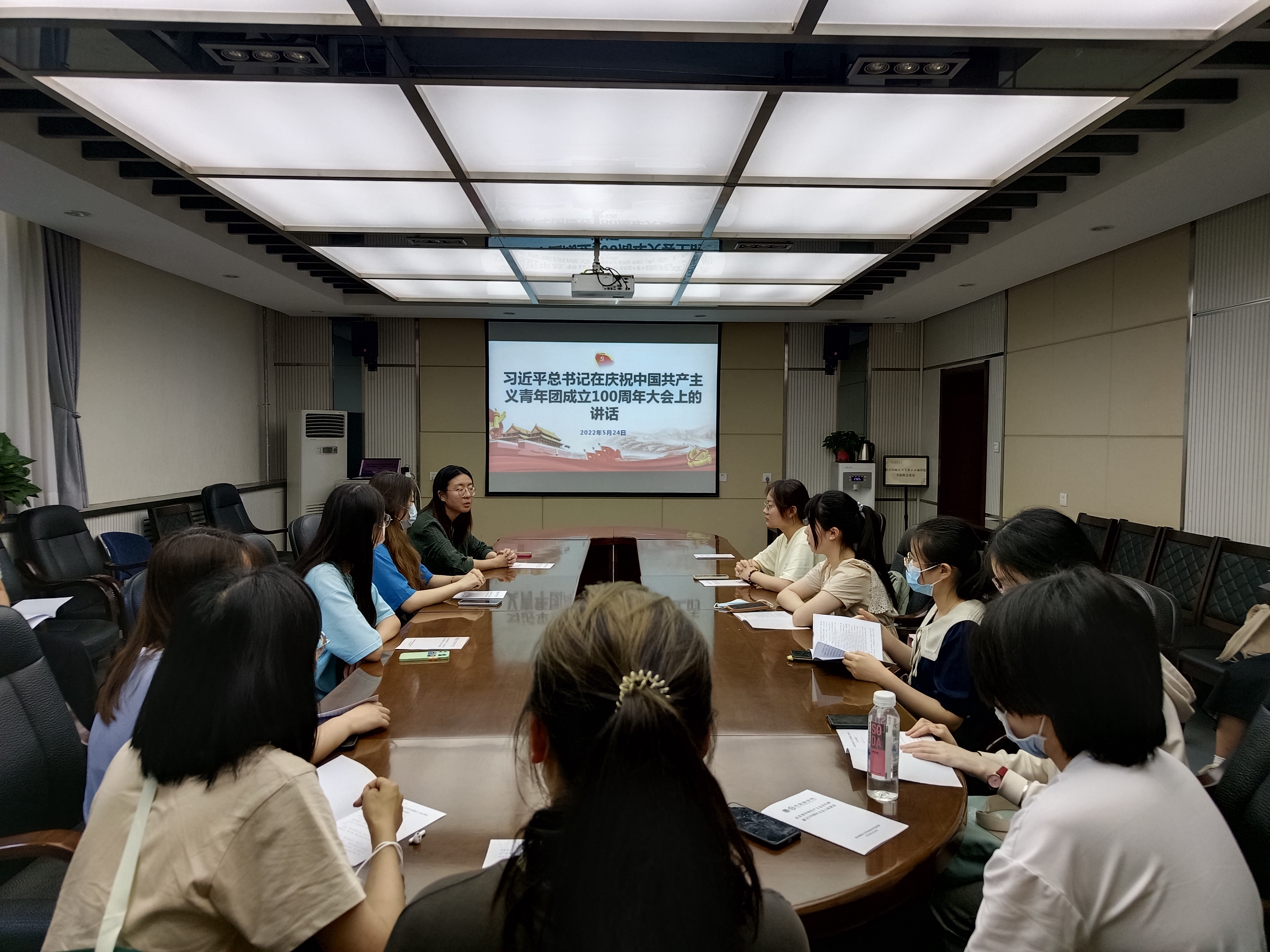 2022年5月19日中午,公司团委召开团支书大会,会议由公司团委书记李丹主持,公司全体团支部书记出席会议。李丹老师带领全体团支书共同学习了习近平总书记在庆祝中国共产主义青年团成立100周年大会上的讲话,她谈到,公司各级团学组织要深刻领会习近平总书记重要讲话精神,切实认识做好新时代共青团工作的重大意义,落实好党建带团建制度机制,紧扣服务青年的工作生命线,想青年之所想、急青年之所急,为青年员工办实事、解难事。随后,辅导员田毓霖也表达了对于团员干部的殷切期望。