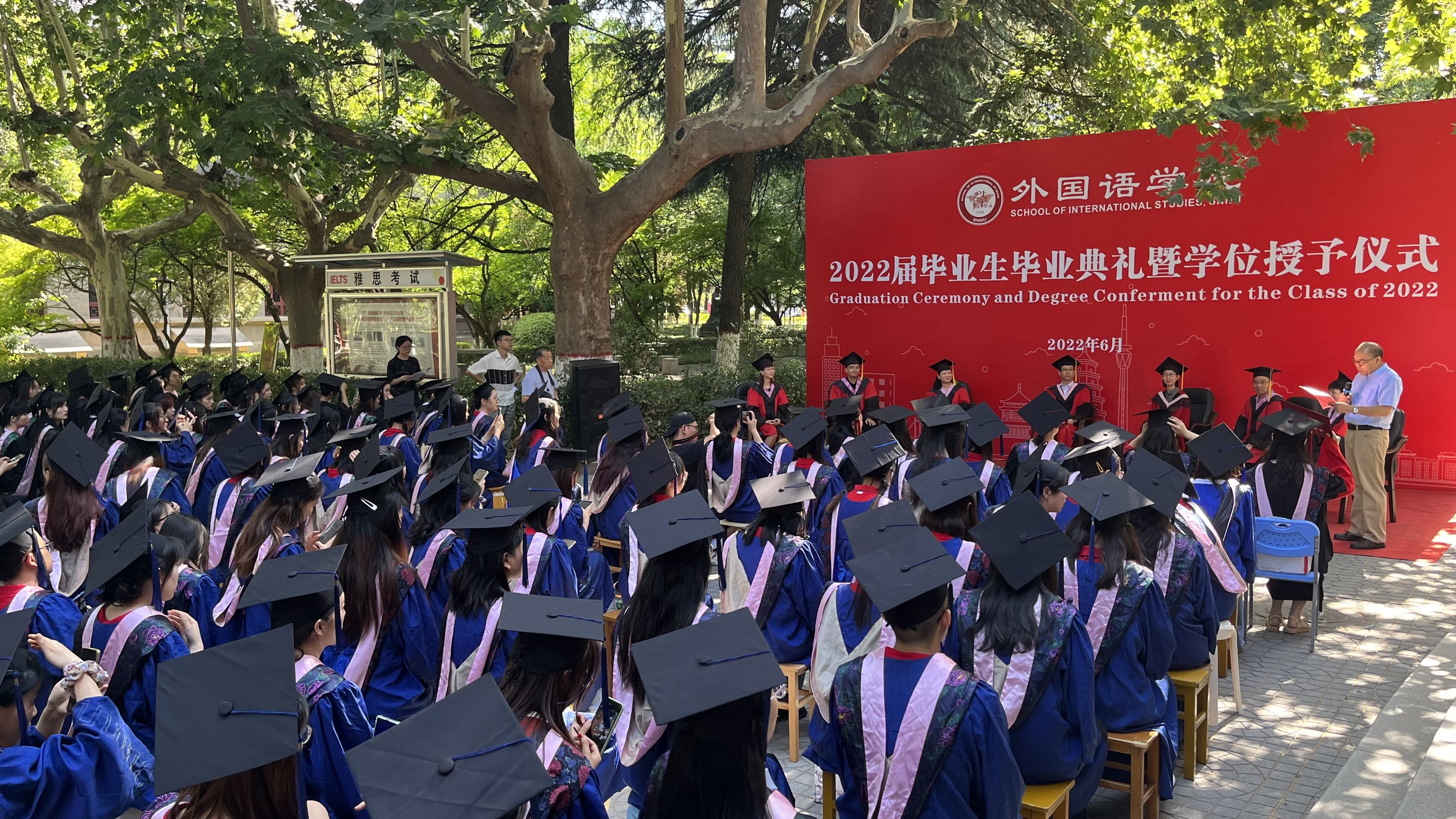 6月24日上午,公司2022届员工毕业典礼暨学位授予仪式在教学六楼门前广场隆重举行,典礼同时在腾讯会议平台直播。3044永利集团经理刘全国教授、党委书记董增云、公司前党委书记张弛、冯武鸣、副经理吕敏宏、曹婷、王幸生、党委副书记鲁燕、公共外语教学部主任马珂、英语系主任朱冬怡、副主任王立永、丁礼明、翻译系主任操林英、副主任杨冬敏、俄语系主任孟霞、副主任王翠、法语系副主任乔溪、日语系副主任许赛锋、学位委员会成员郑元会、张亚婷、魏军梅、办公室主任陈斐、语言语音教学中心主任邢俊升、团委书记李丹,以及全体辅导员出席典礼。典礼由3044永利集团副经理孙坚教授主持。公司2022届毕业生在公司领导和老师的共同见证下,拨穗正冠,开启人生新的旅程。