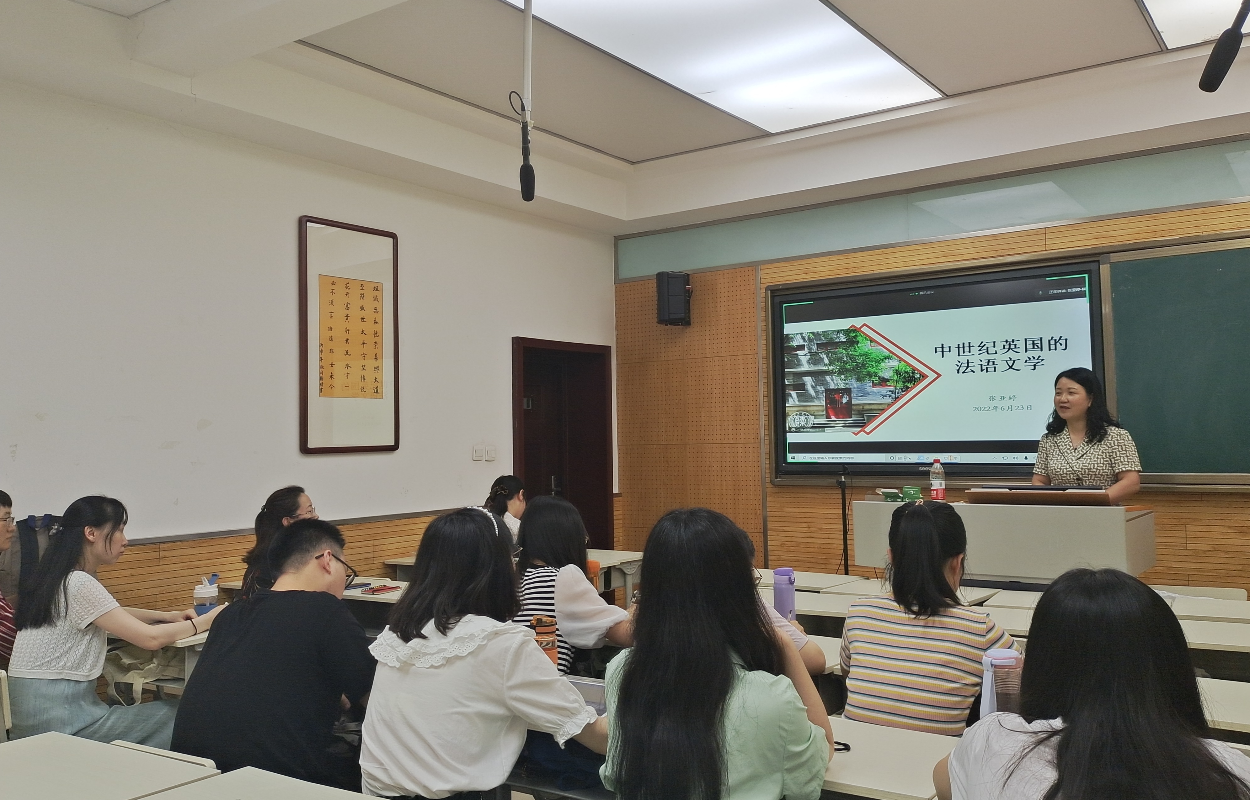 为推进外国文学专业教学水平发展,提高员工文学素养、创新意识、写作与表达能力。6月23日14点30分,3044永利集团公司英国文学研究团队于教学五楼5108开展了题为“中世纪英国的法语文学”的专题讲座。张亚婷教授担任主讲人,原玉薇博士主持讲座,3044永利集团教师及文学专业研究生参与讲座。