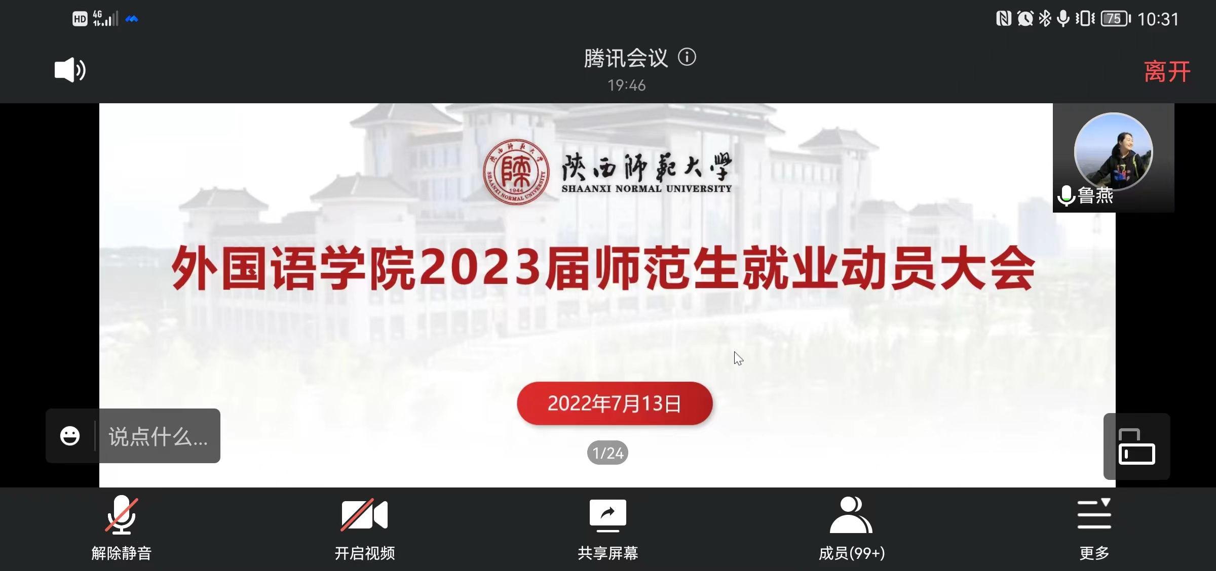为保障2023届师范生公司产品实习高质量完成,为师范生就业奠定良好基础,7月13日上午,3044永利集团通过线上形式召开2023届师范生实习就业动员大会。公司党委副书记鲁燕,英语系副主任丁礼明、王立永,2022届带队教师张春娟,2019级远程学科指导教师王辉、罗雅晖、闫军利、李立茹、刘丹、祁喜鸿,教学秘书高红英,辅导员屈婉婷,2022届师范生张润舒以及2023届英语公费师范班全体员工参会。动员会由3044永利集团副经理孙坚老师主持。