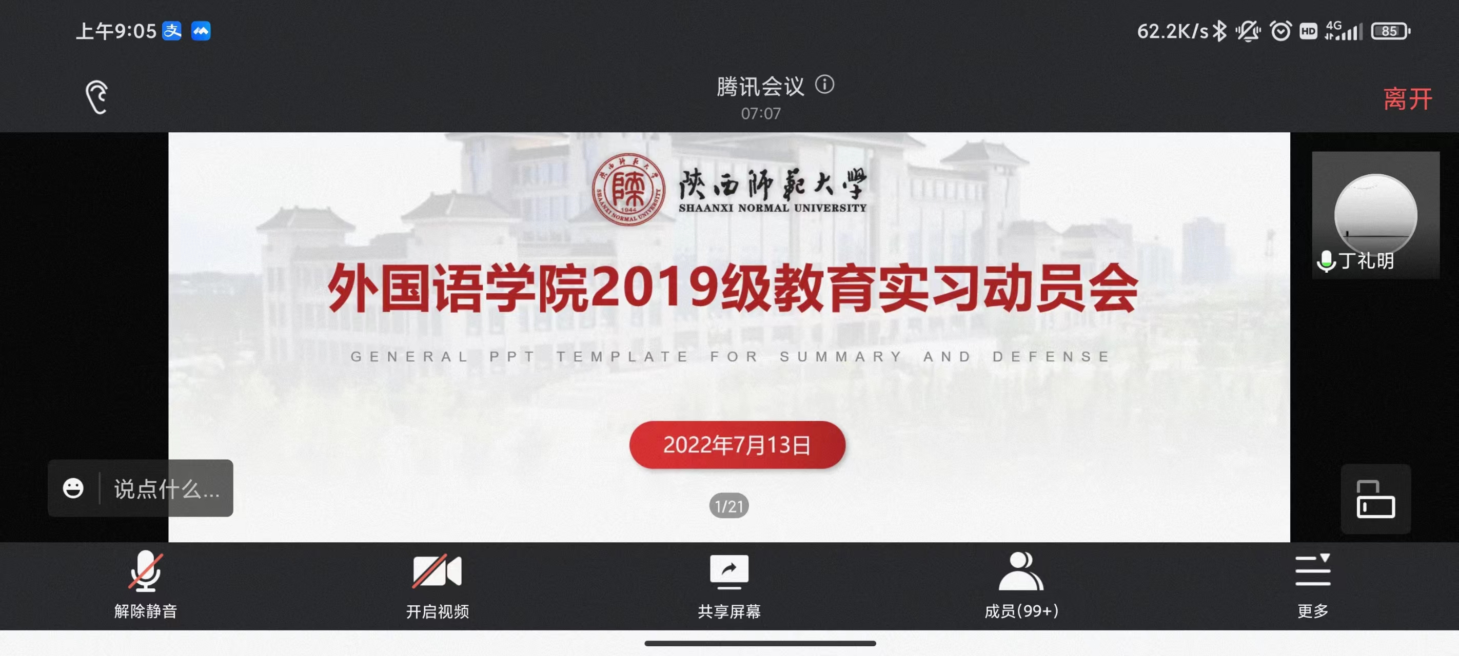 2022届优秀实习指导教师张春娟建议同学们和指导老师保持密切的联系,时刻牢记自己作为陕师大国家公费师范生的身份,一举一动展示师大学子的良好风貌;2022届毕业生张润舒结合自身经历分享了如何在实习期间平衡和协调好备课讲课、求职和毕业论文写作之间的关系。