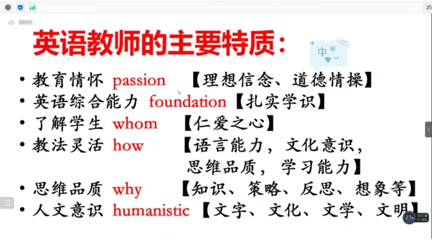为了提高公司学科教学(英语)专业研究生的外语教学能力,加强员工对外语教学学科价值的理解,3044永利集团于10月21日下午在腾讯会议线上进行了外语教育学科前沿讲座第十讲——英语教师是怎样炼成的?本次讲座由3044永利集团崔琳老师主讲,韦理老师主持。2022级学科教学(英语)专业教育硕士聆听了讲座。