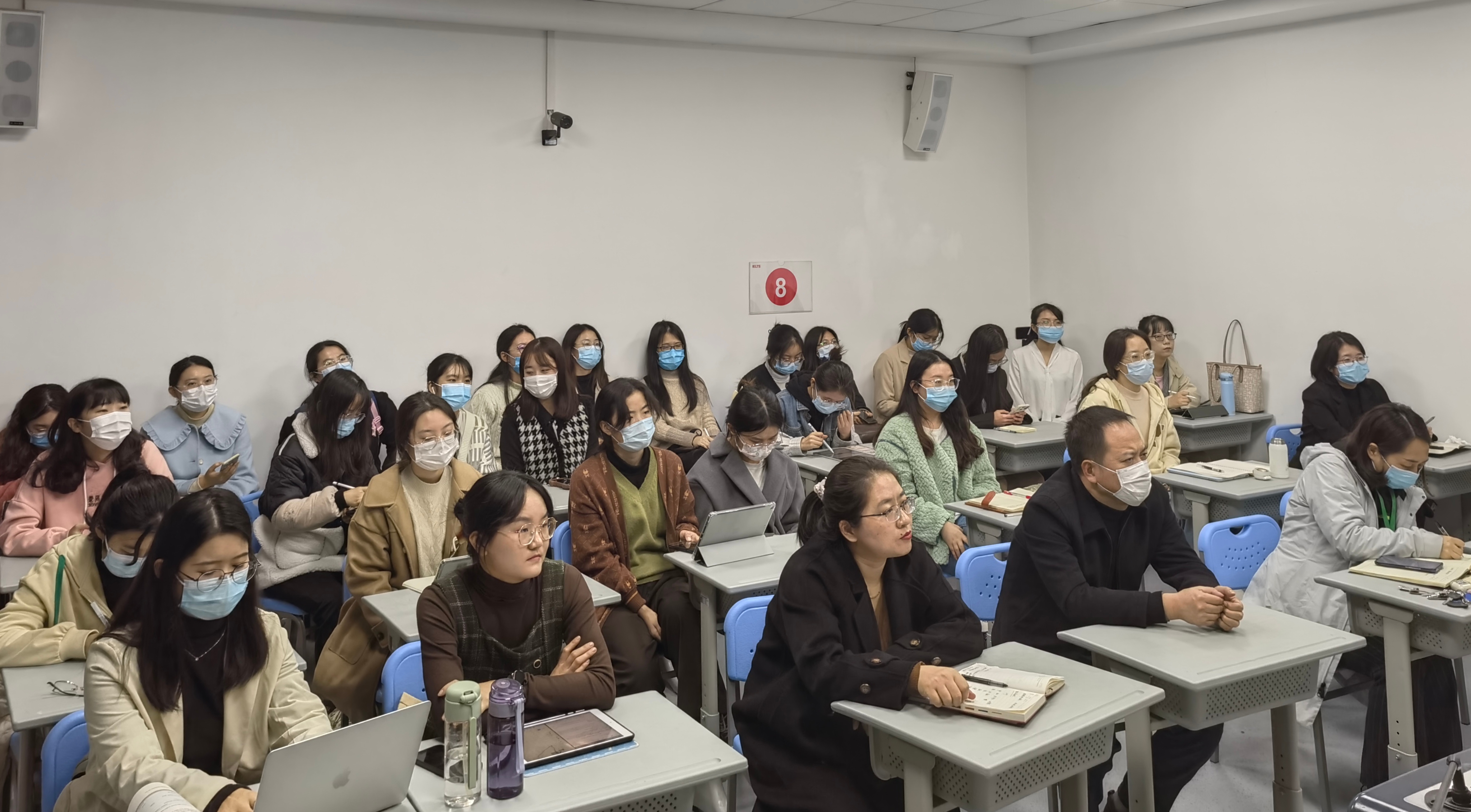 试讲环节开始前,姚菊香以《给未来班主任的建议》为题,分享了班主任应具备的几种能力素质,介绍了行之有效的小组合作制度等流程化班级管理方式,并表达了对同学们未来的期许;杨蕾在《回看职初这几年》的分享中结合自身经历,从“净”“敬”“精”“经”“精”“景”几个关键字入手,深入分享了自己的心得体会,鼓励同学们坚守初心,在挑战中实现自我成长,收获人生中不一样的风景。