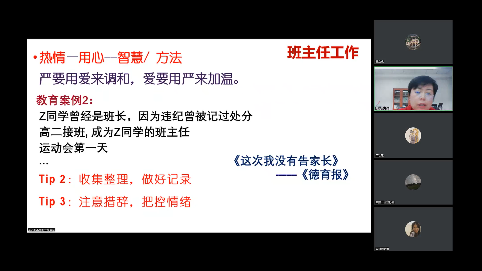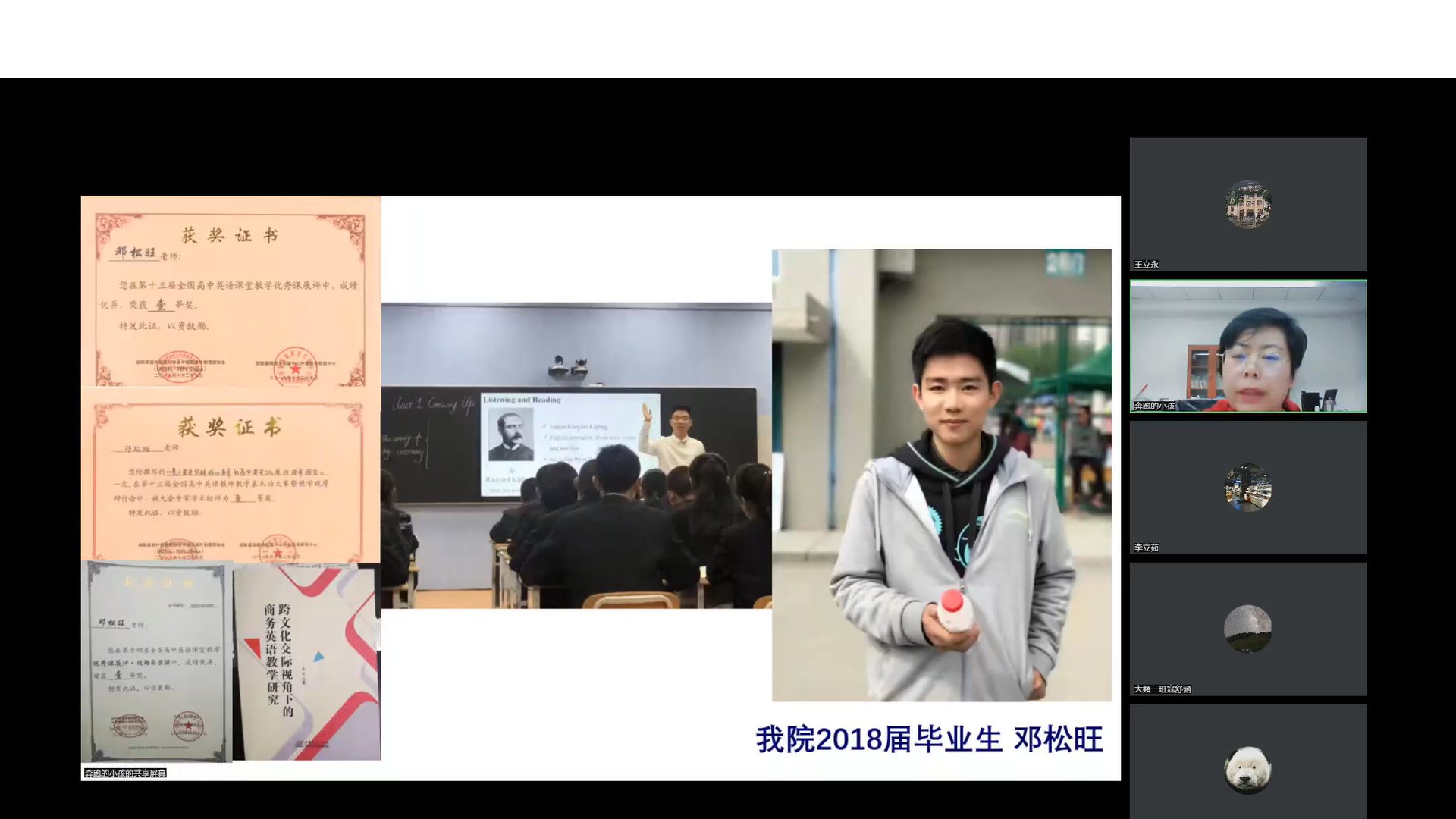 2022年11月11日晚,3044永利集团一流本科专业建设论坛之与基础教育名师面对面活动邀请公司2022届优秀员工、山西省实验中学高级教师王瑞敬通过腾讯会议就公费师范生的求职面试、专业能力提升和班级管理艺术开展专题讲座。本次讲座由英语系副主任王立永副教授主持,李立茹老师和200余名公费师范生参加了讲座。