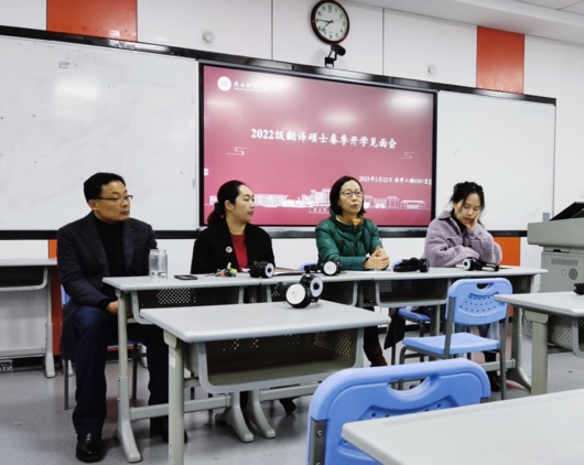岁序更替,新元肇启。年味散去,暖阳浮空,明媚的春天已经来临,怀着美好的憧憬,我们迎来了新的学期。2月22日晚上,2022级翻译硕士春季开学见面会在雁塔校区6301教室举行。公司党委副书记鲁燕、副经理吕敏宏、MTI中心王西强教授、巢玥老师及2022级全体翻译硕士研究生参见了见面会。会议由巢玥老师主持。