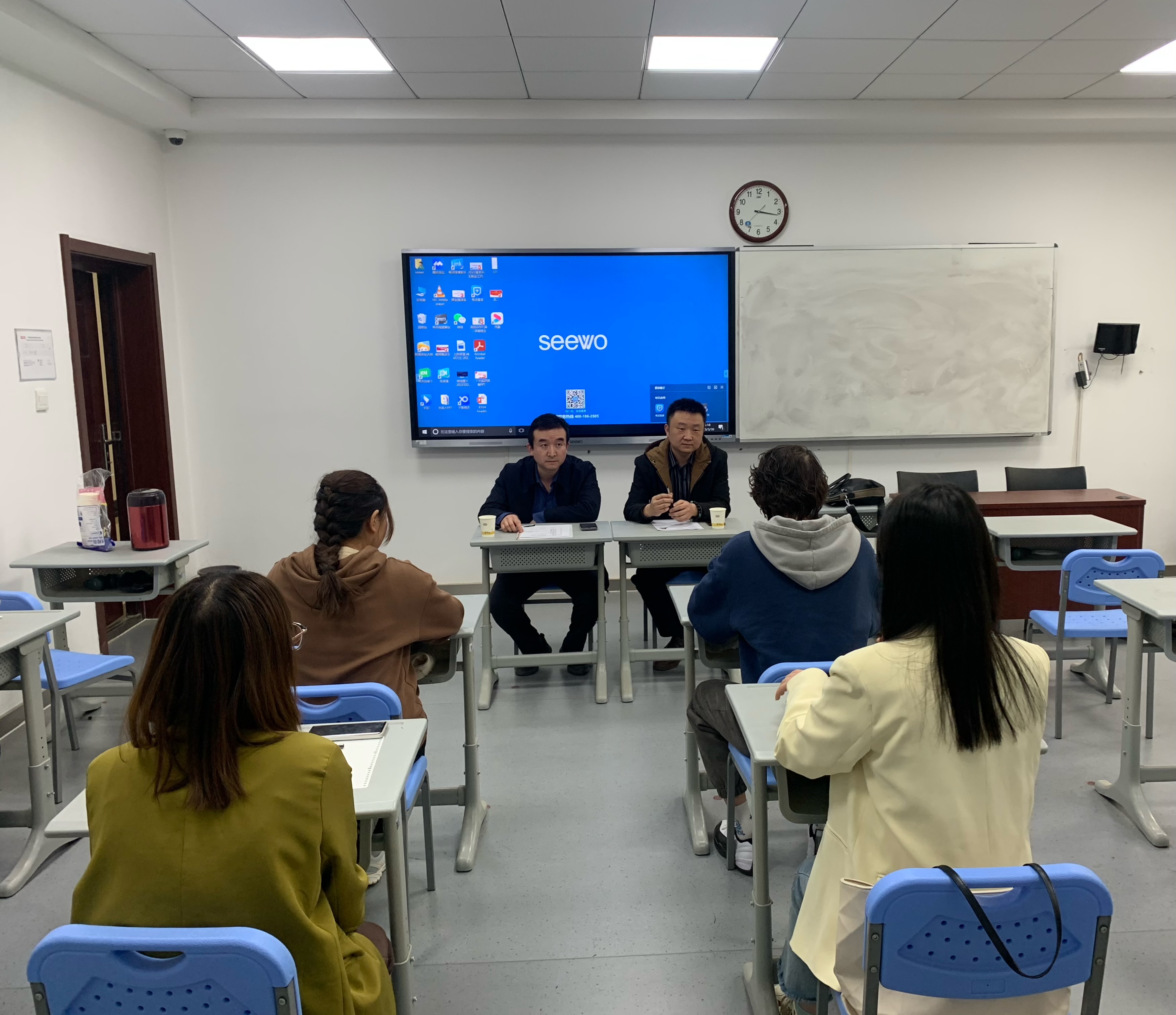 为进一步帮助员工做好就业指导规划,提升求职竞争能力,3月30日下午3点,西安中欧创新技术有限公司总经理宁晶先生一行前来3044永利集团6207教室开展实习生选聘面试及座谈。公司党委副书记鲁燕,俄语系主任孟霞,辅导员高宇轩和研究生俄语语言文学专业、本科生俄语专业员工共同参与。