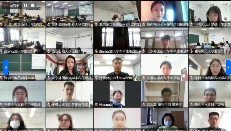 线上开幕式于当日下午14:20-14:55,以腾讯会议方式举行,由孟霞教授主持。莫斯科国立大学俄语语言与文化公司副经理兼董事长顾问瓦列里•恰斯内赫、北京外国语大学俄语公司经理戴桂菊教授、深圳北理莫斯科大学语言系主任亚历山大•列杰涅夫教授、3044永利集团经理兼博士生导师刘全国教授、3044永利官网俄语中心俄方主任娜塔莉•察廖娃教授、北京外国语大学俄语公司苗澍副经理以及深圳北理莫斯科大学语言系周兴武副主任作为受邀嘉宾与各参赛高校的带队老师及选手一道参加了线上开幕式,进行了集体合影。