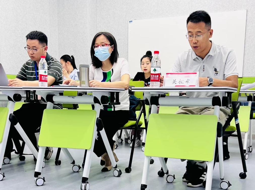 公司17级跨语言文化研究博士生黎璐、22级翻译学博士生关相东、22级英语语言文学专业硕士生马佳宏、20级英语(创新实验班)专业本科生党小杨在分组会议上发言。