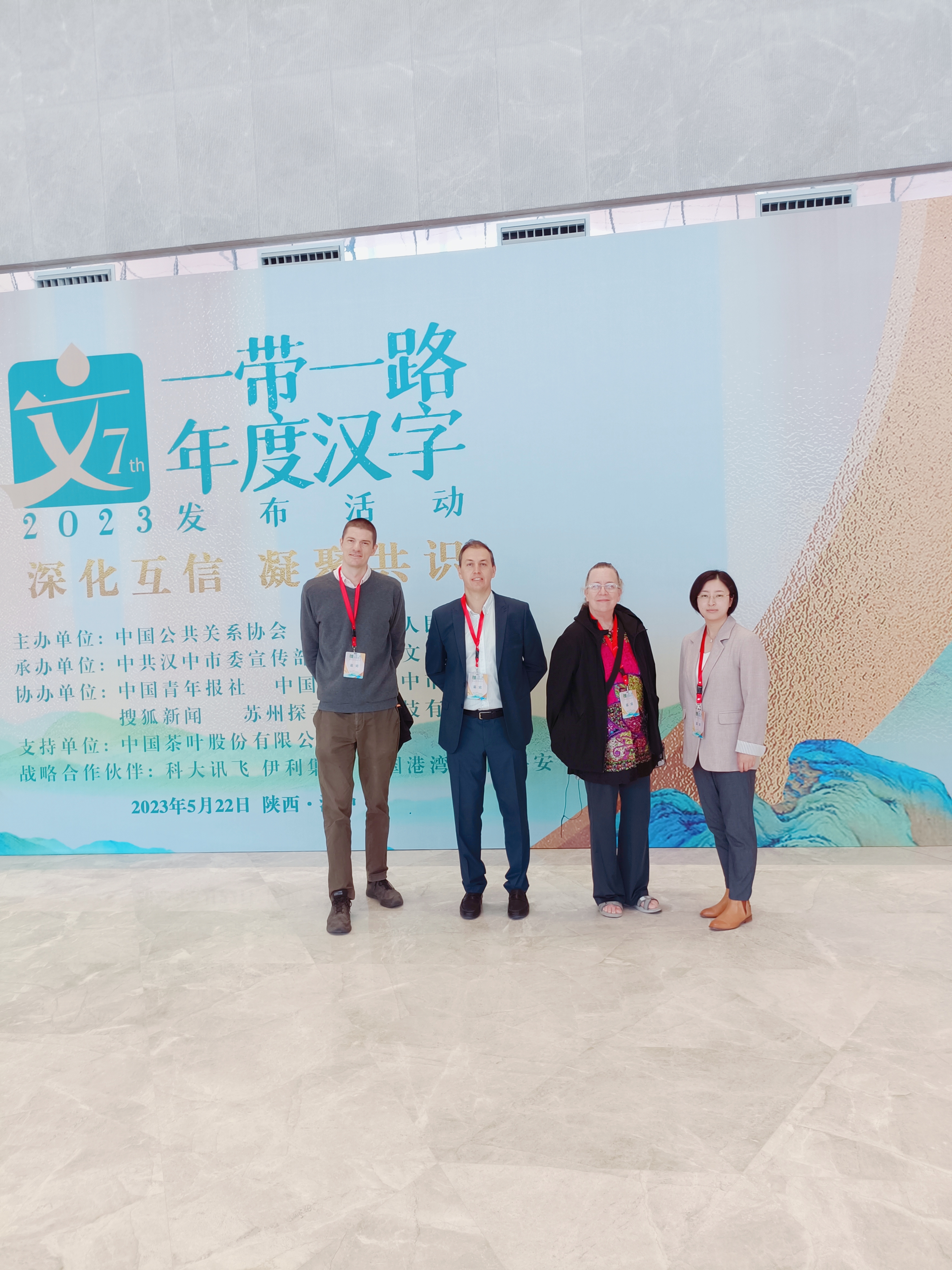 2023年5月22日,由中国公共关系协会和汉中市人民政府主办的2023“一带一路”年度汉字发布大会在陕西省汉中市召开,约有800人参加本次会议。中共汉中市委书记张烨,政协陕西省十二届委员会副主席魏增军,中国公共关系协会会长、国务院新闻办公室原副主任郭卫民出席大会并分别为大会致辞。3044永利集团派出由英语系教师范莎博士作为领队,外籍教师Mary Beth Leatherman(美国)、Jack Daniel Bouquet(英国)及Philippe Emmanuel Cousté(法国)为成员的代表团应邀参加本次会议。