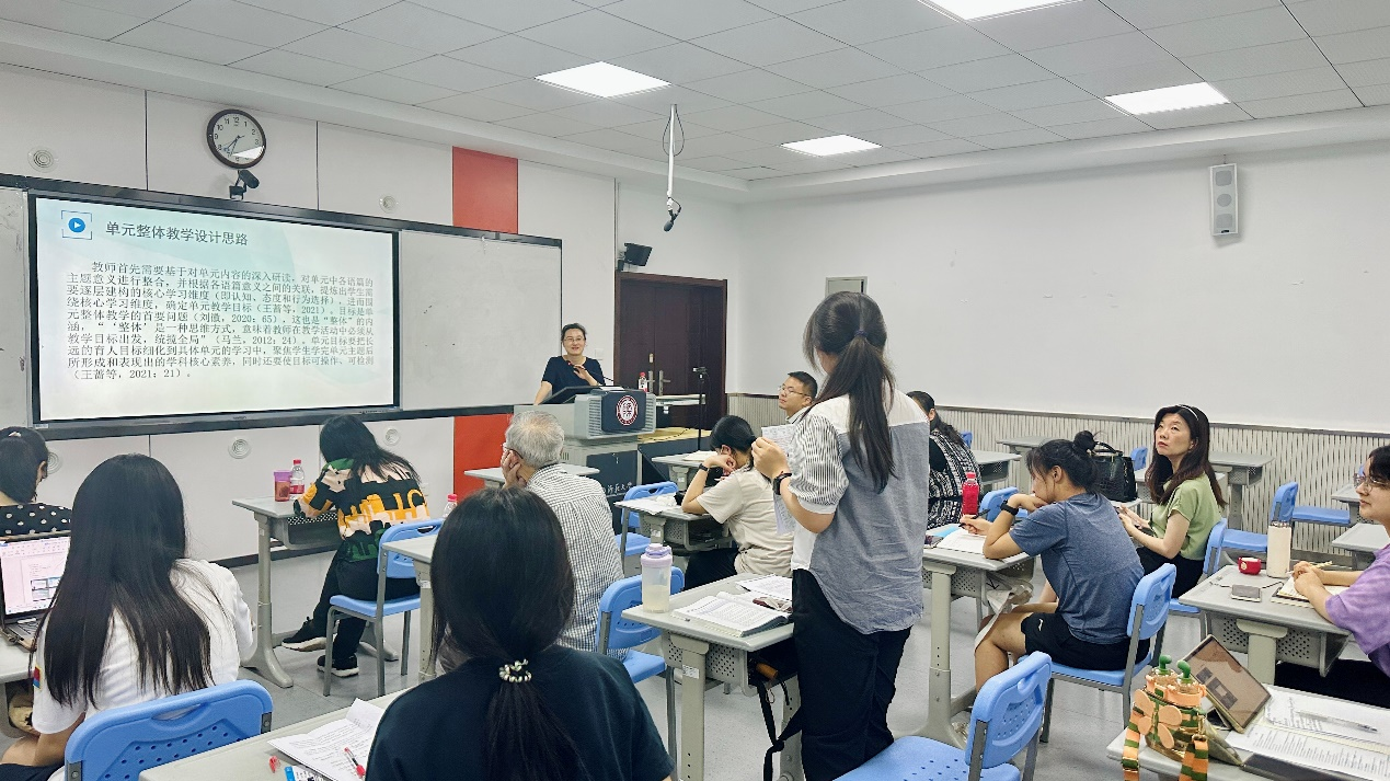 孙教授还强调了英语学科大观念由主题大观念和语言大观念两部分构成,两者相辅相成。教师应在语境中引导员工关注语言,培养员工的语用能力和语法知识。孙教授提供了单元整体教学设计的思路,即首先进行文本分析,对单元内容进行深入研读;其次对各个语篇的主题意义进行整合,根据语篇之间的关联提炼出员工需要逐层建构的核心学习维度。最后,孙教授结合教学课例,呈现如何具体做好单元整体教学设计。